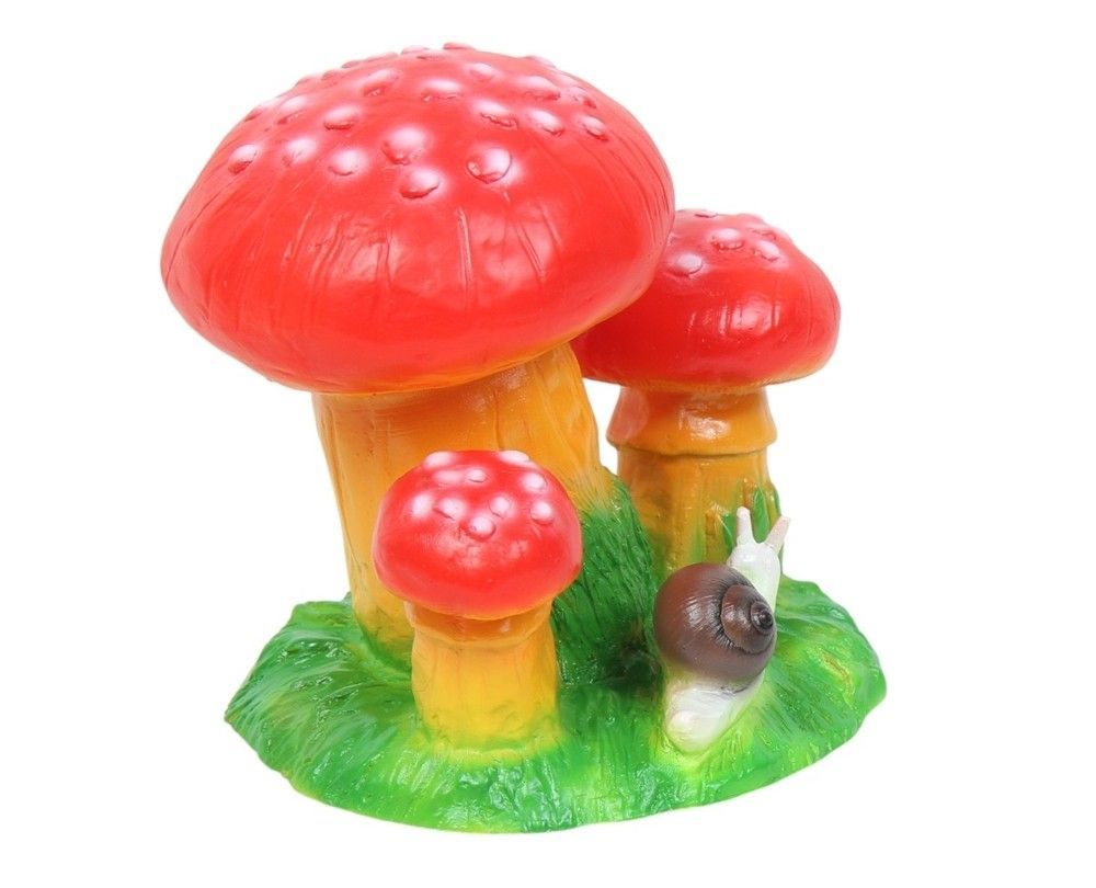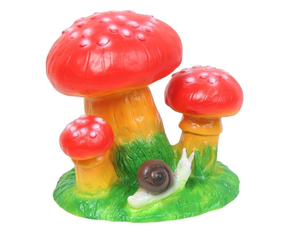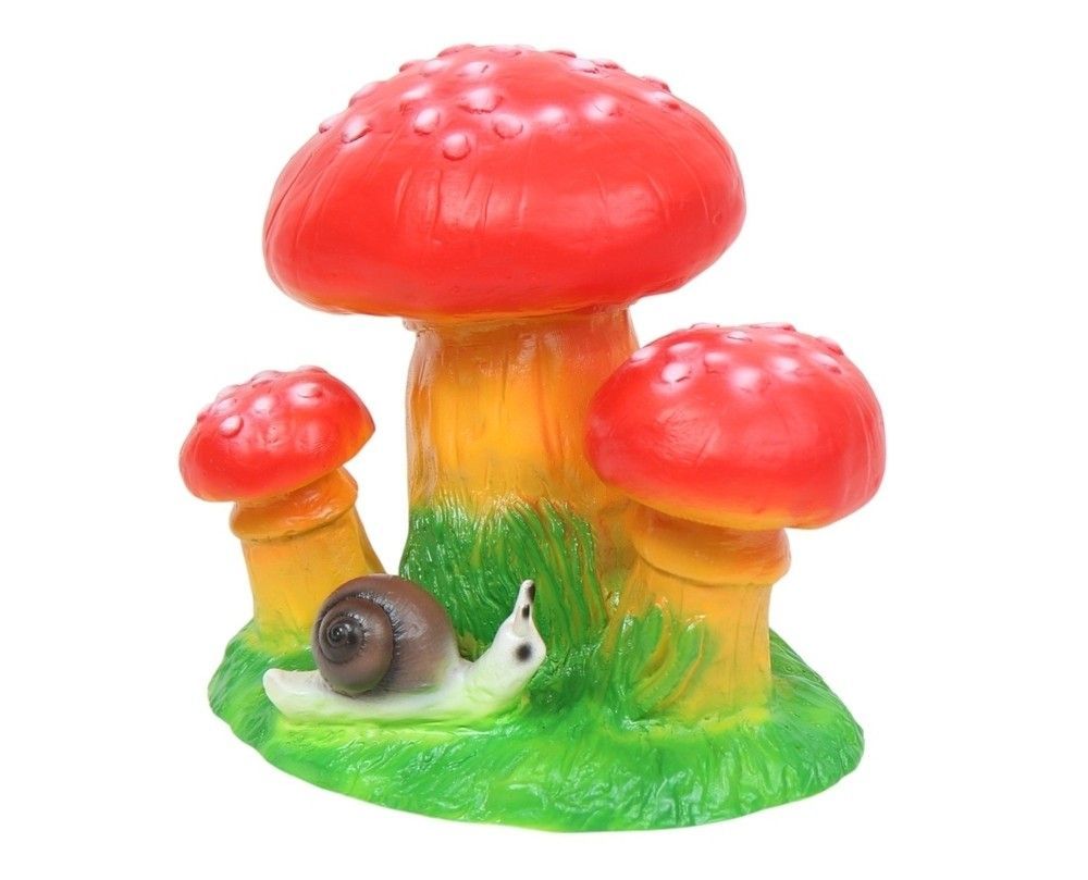 Dekofigur drei Fliegenpilze Pilze mit Schnecke H 15 cm Deko Garten Figur Gartenfigur