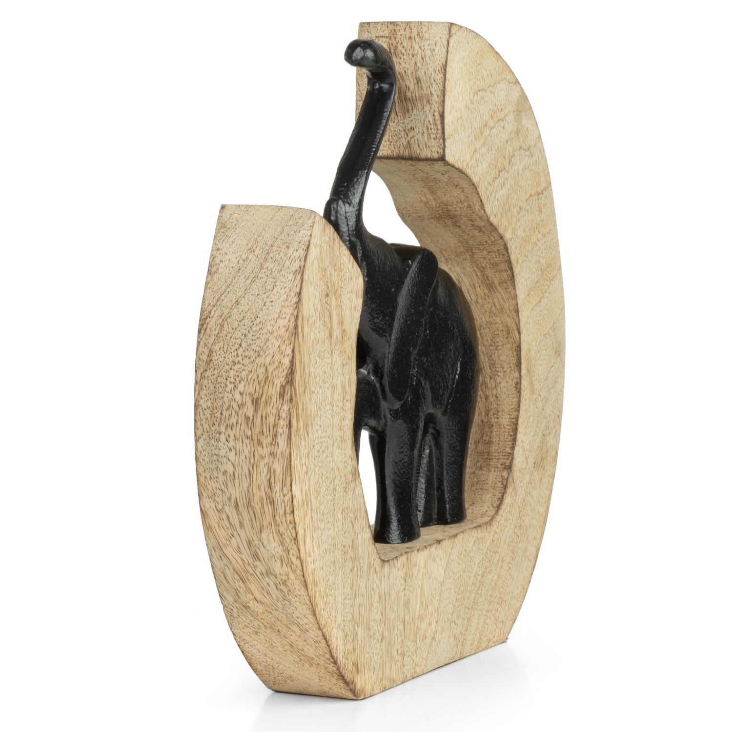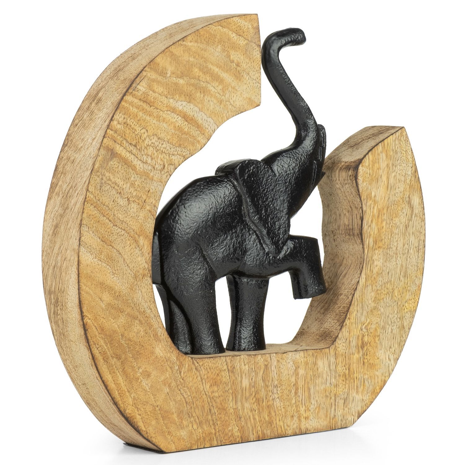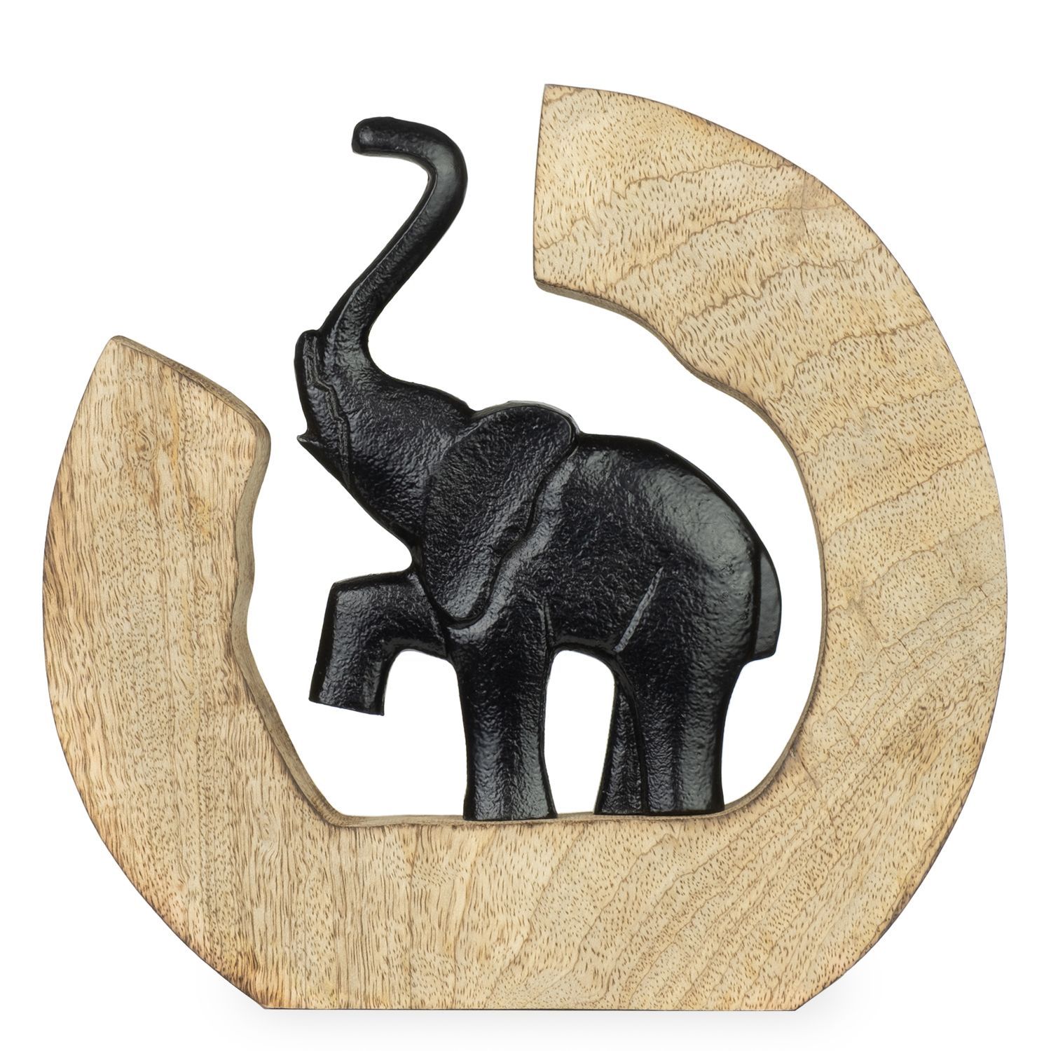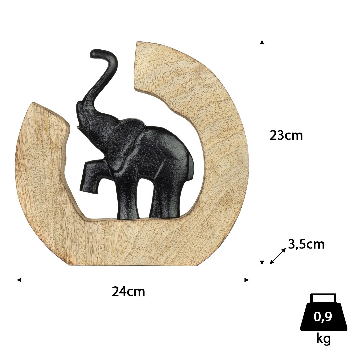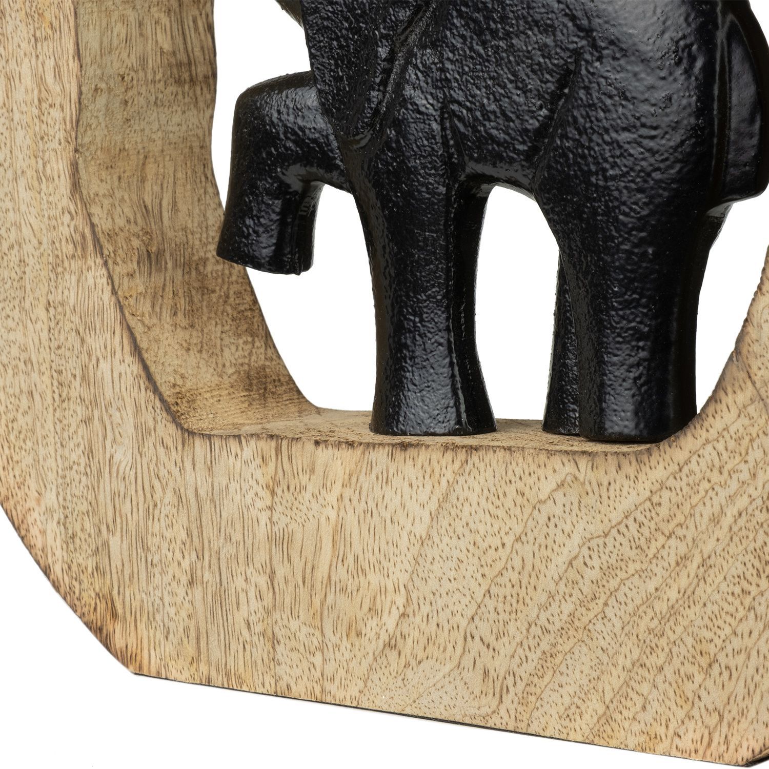 Dekofigur Elefant aus Aluminium schwarz auf Mangoholzsockel 24 x 3,5 x 23 cm moder