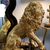 Dekofigur Löwe seitlich sitzend Tierfigur stolzer Löwenkönig Shanti in Gold H 55 cm