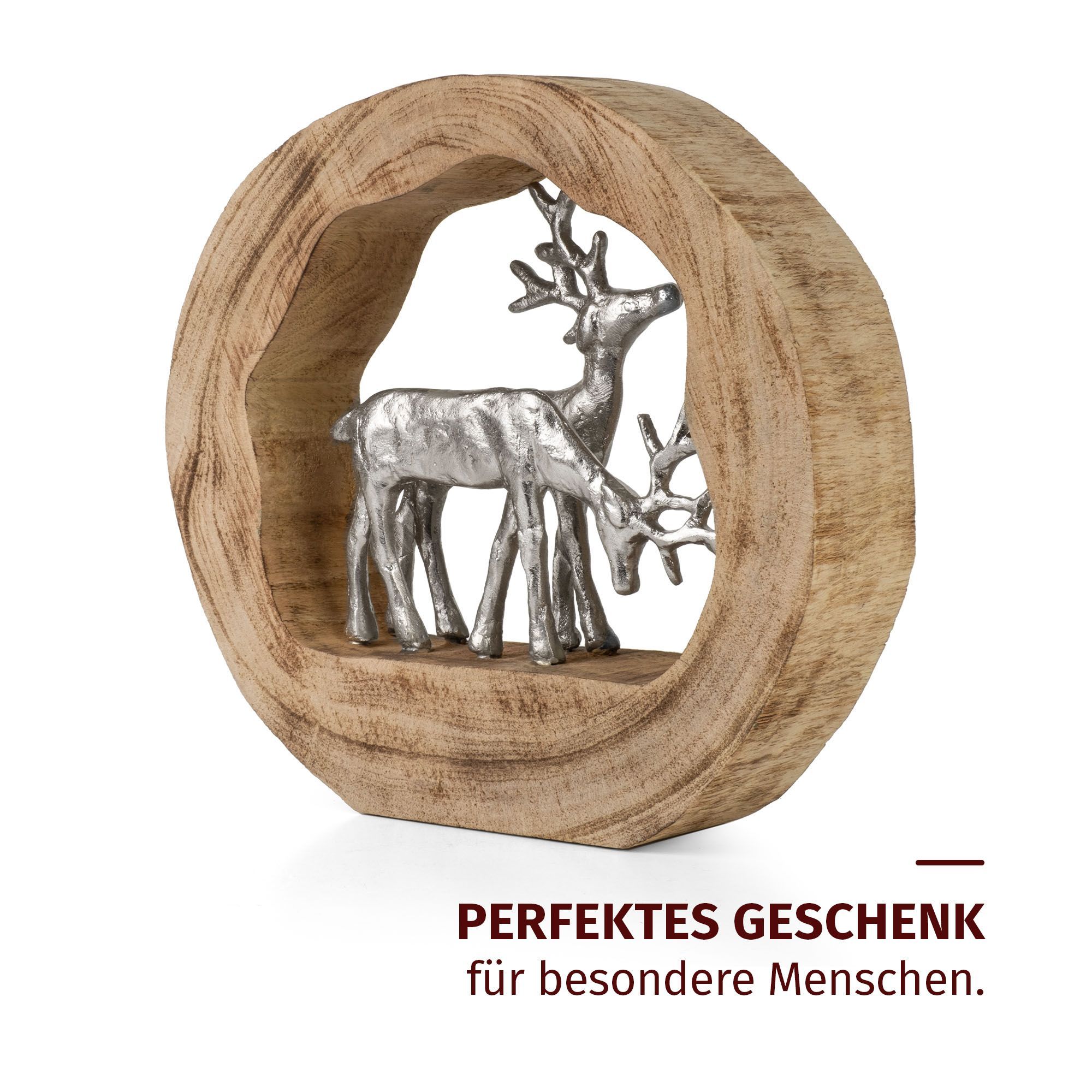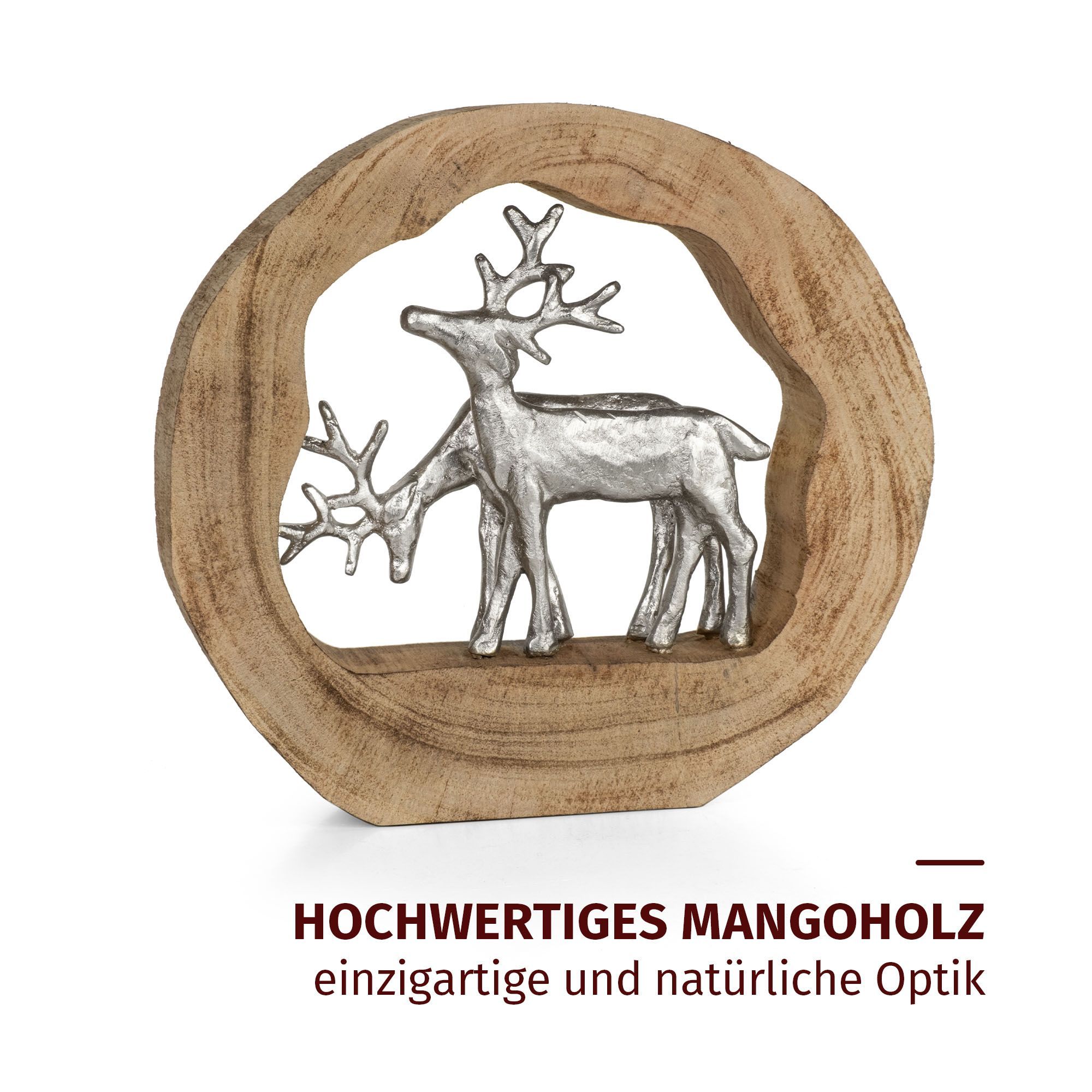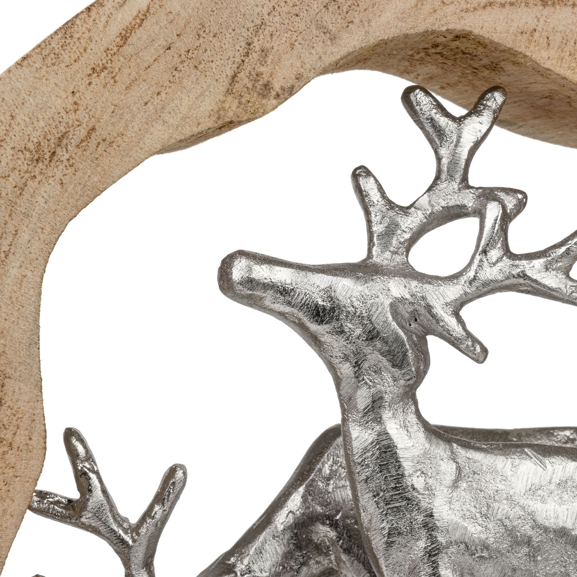 Dekofigur Rentiere im Holzring aus Mangoholz Aluminium Holzskulptur 27,5 cm