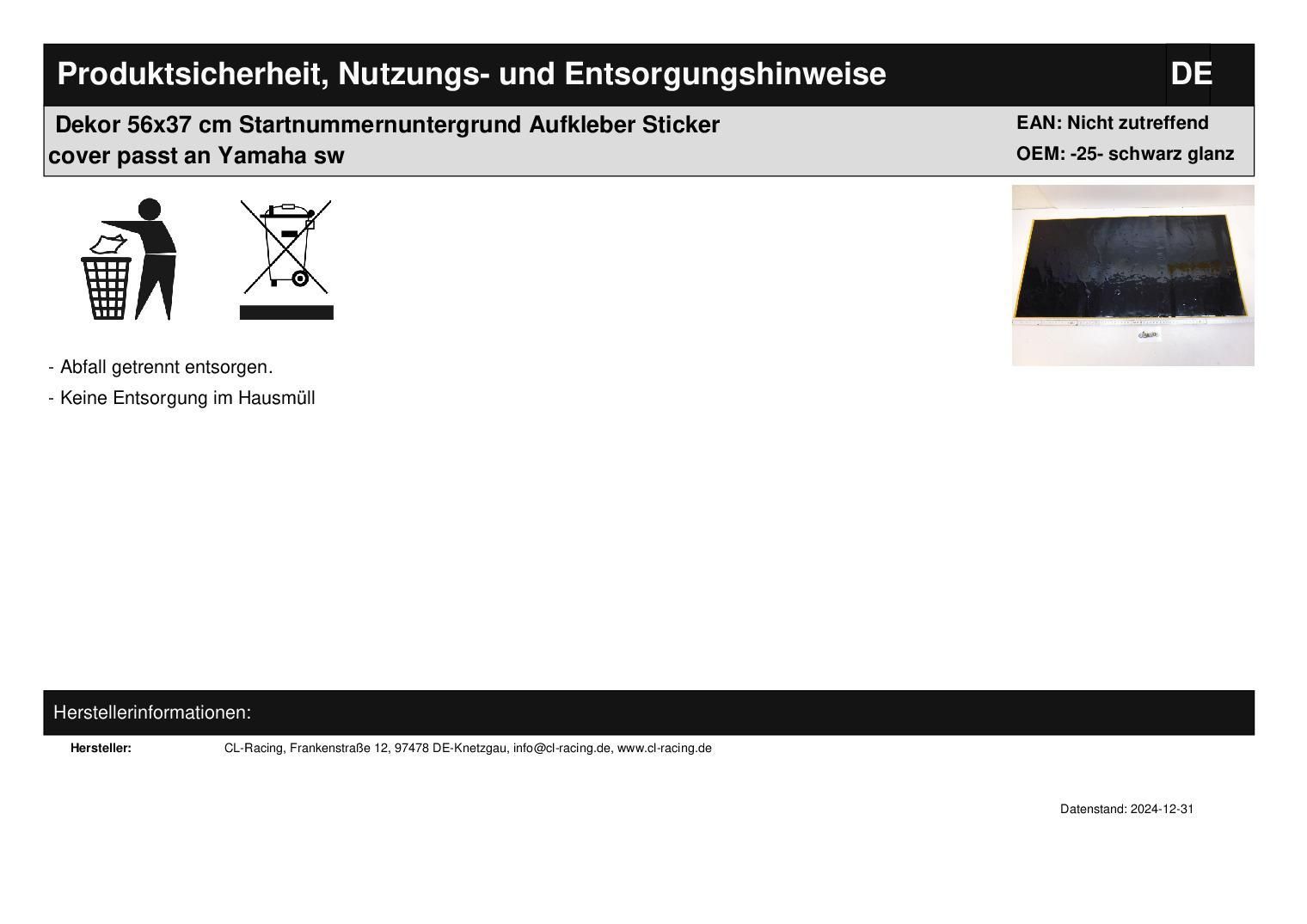 Dekor 56x37 cm Startnummernuntergrund Aufkleber Sticker cover passt an Yamaha sw