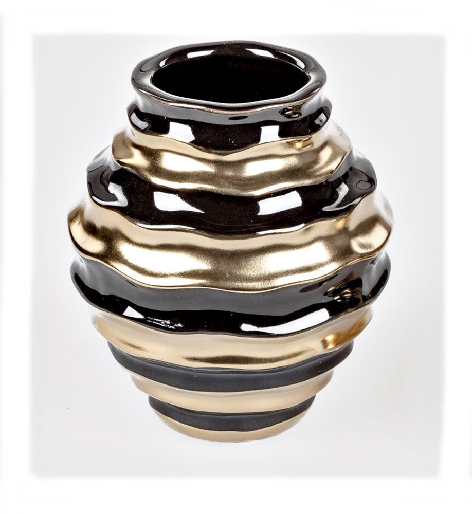 Dekorative Blumenvase Keramikvase Vase 15cm schwarz goldfarben