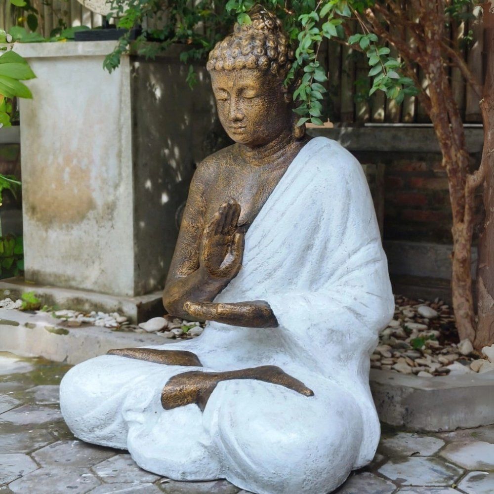 Dekorative Figur BUDDHA Protect 120cm weiss-gold Garten Indoor Outdoor