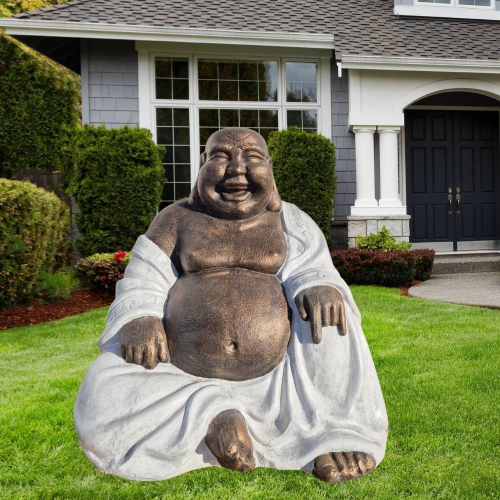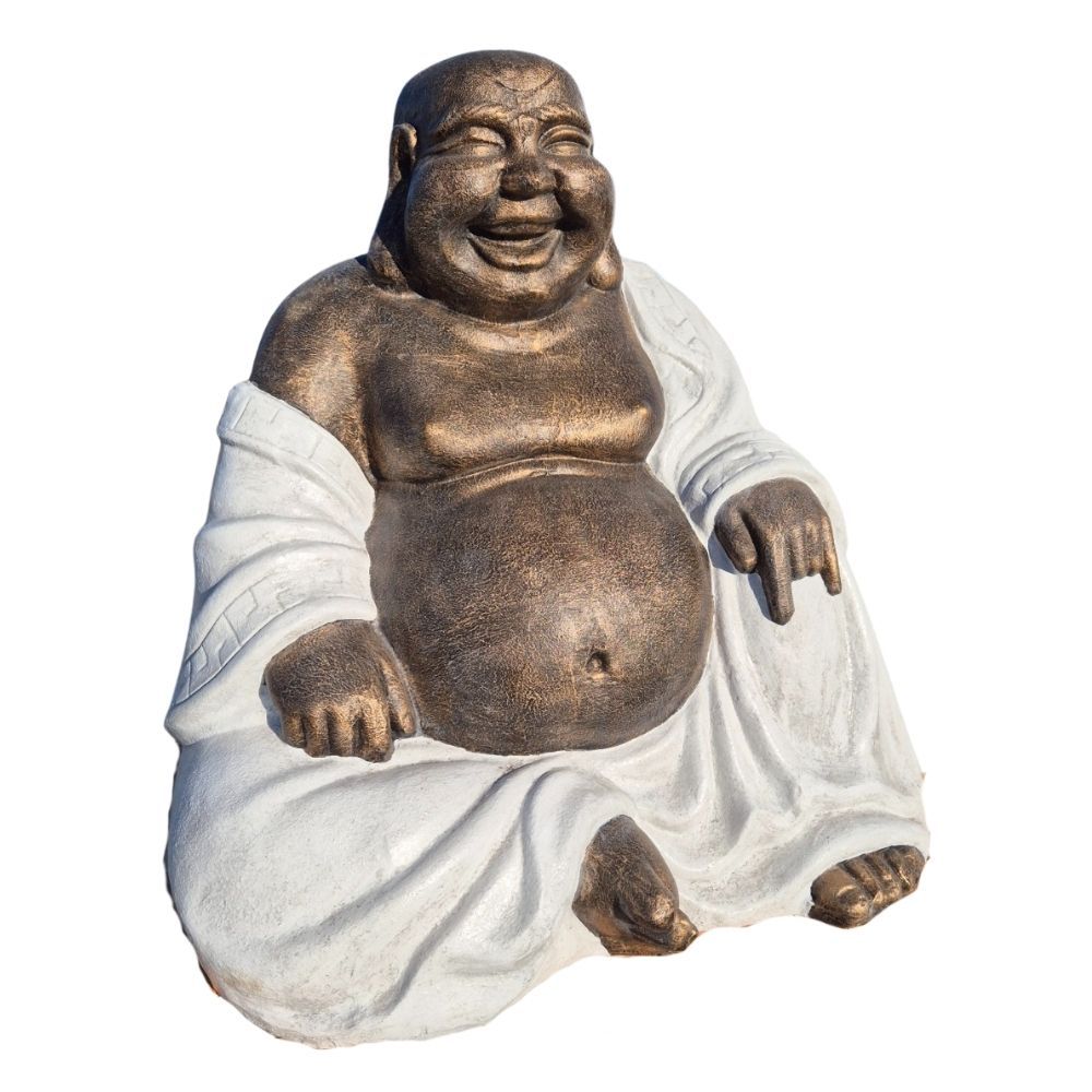 Dekorative Figur LUCKY BUDDHA 110cm Gold-Weiss Garten Indoor Outdoor