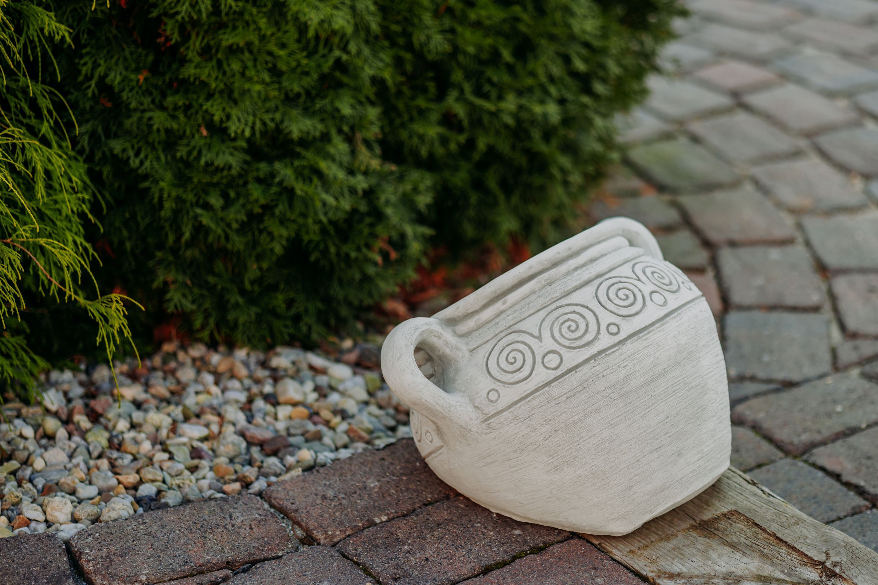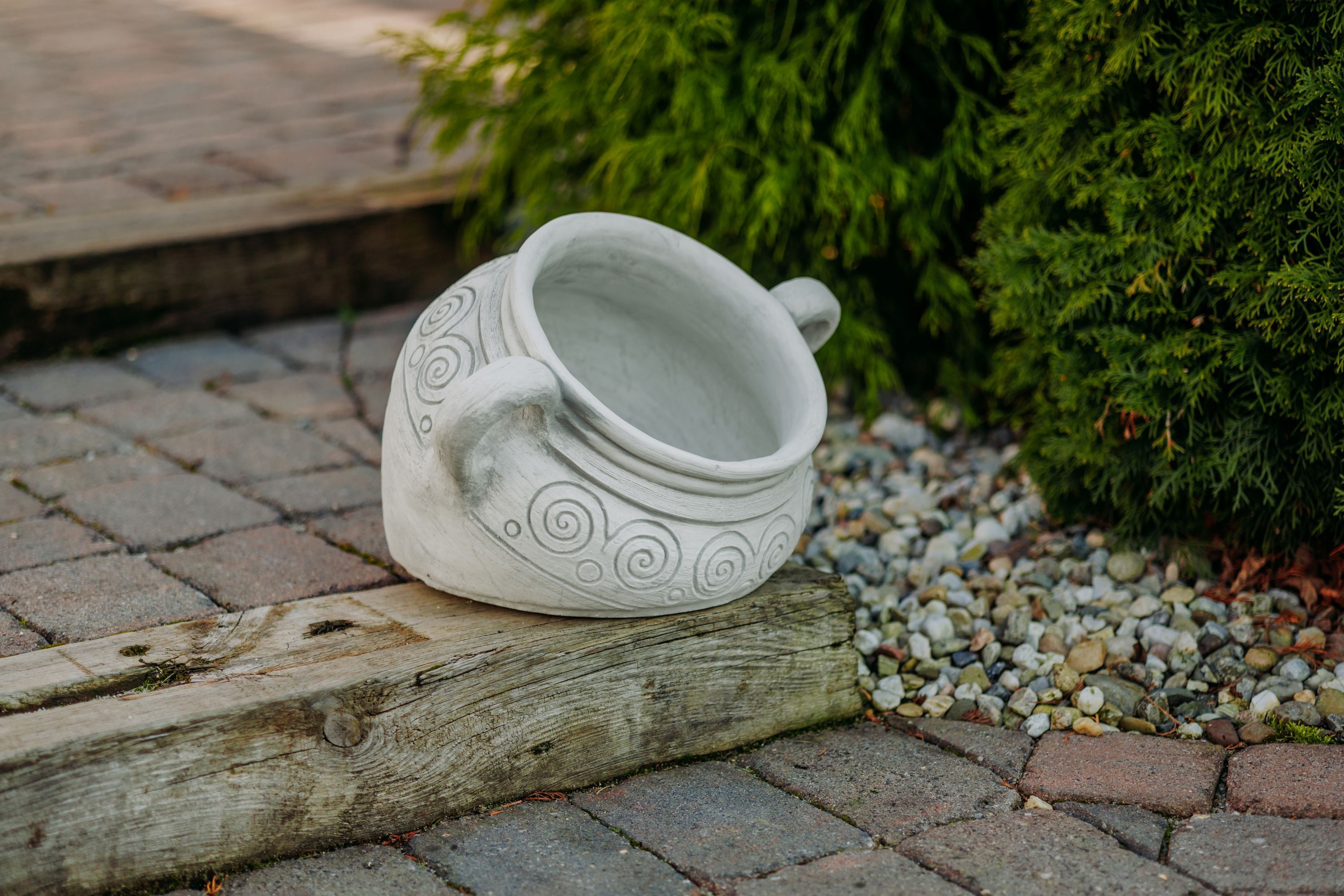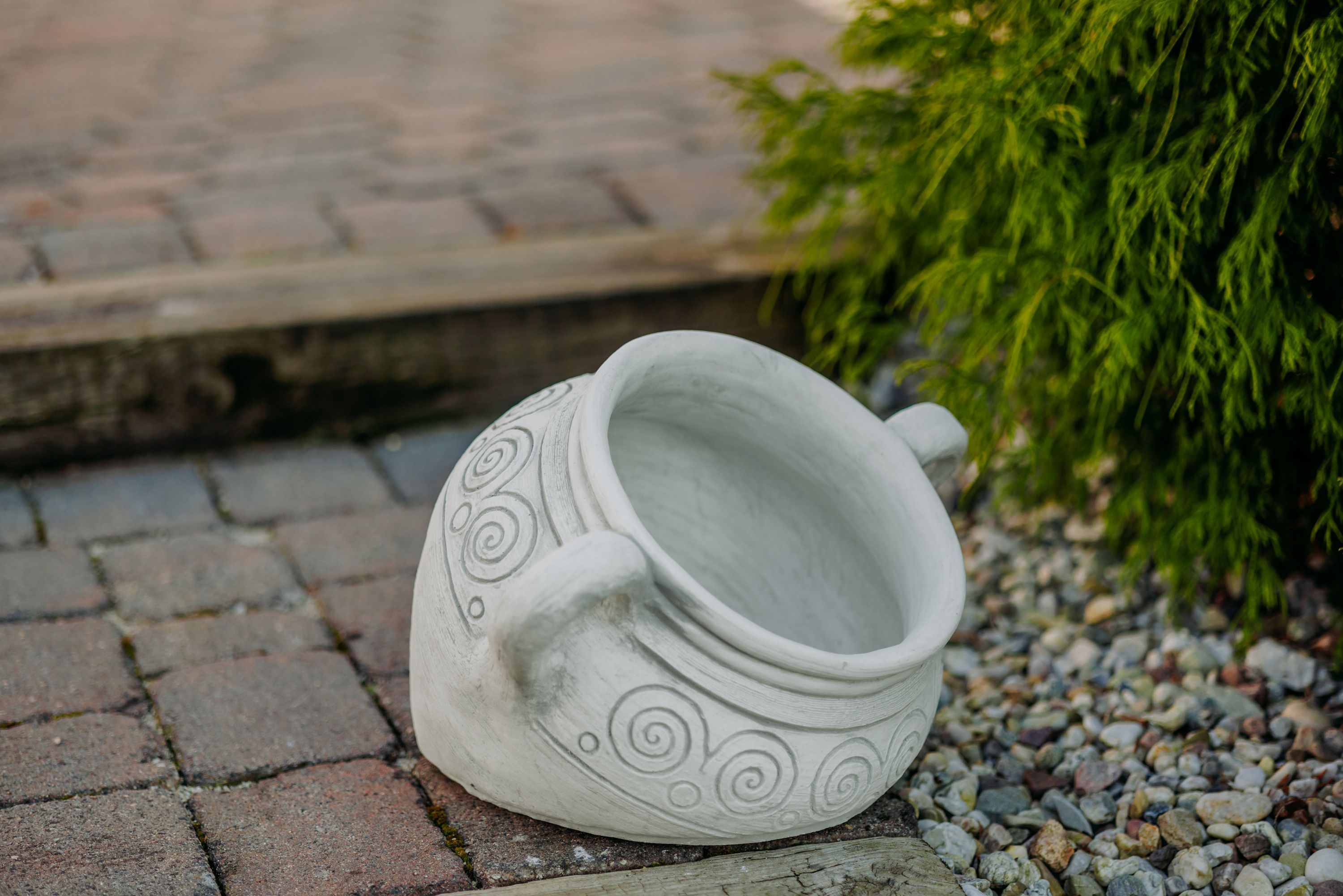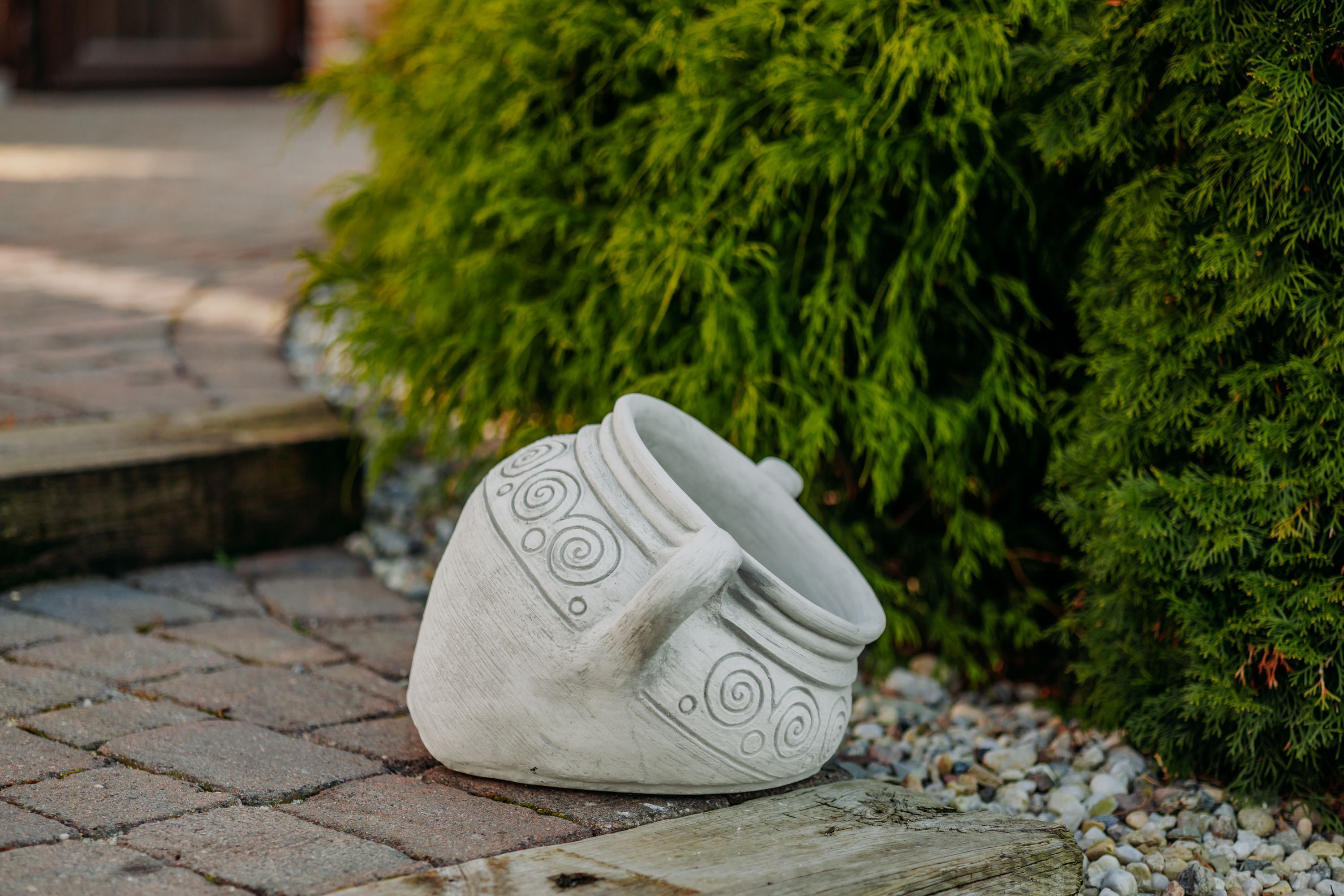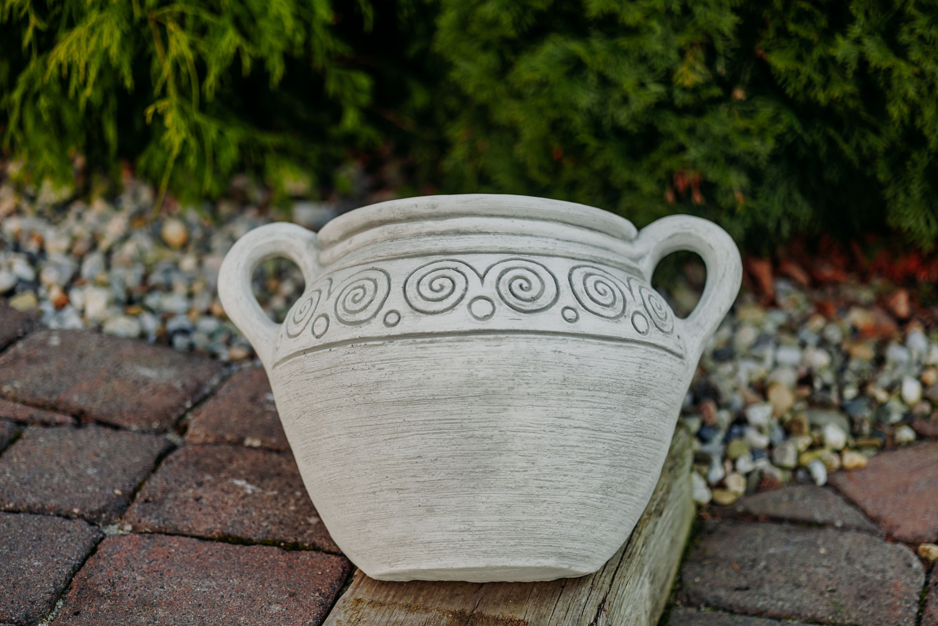 Dekorative Garten-Amphore mit Spiralrelief, 30 cm Höhe, 45 cm Breite, Frostsicher