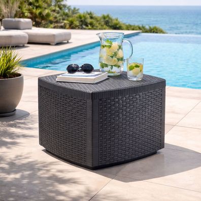 Garten Beistelltisch Rattan Optik mit Aufbewahrungsfach Kunststoff 53x53x40cm