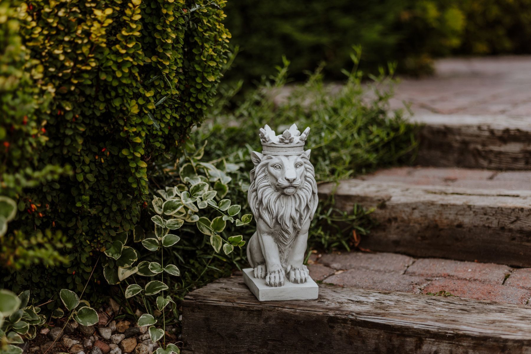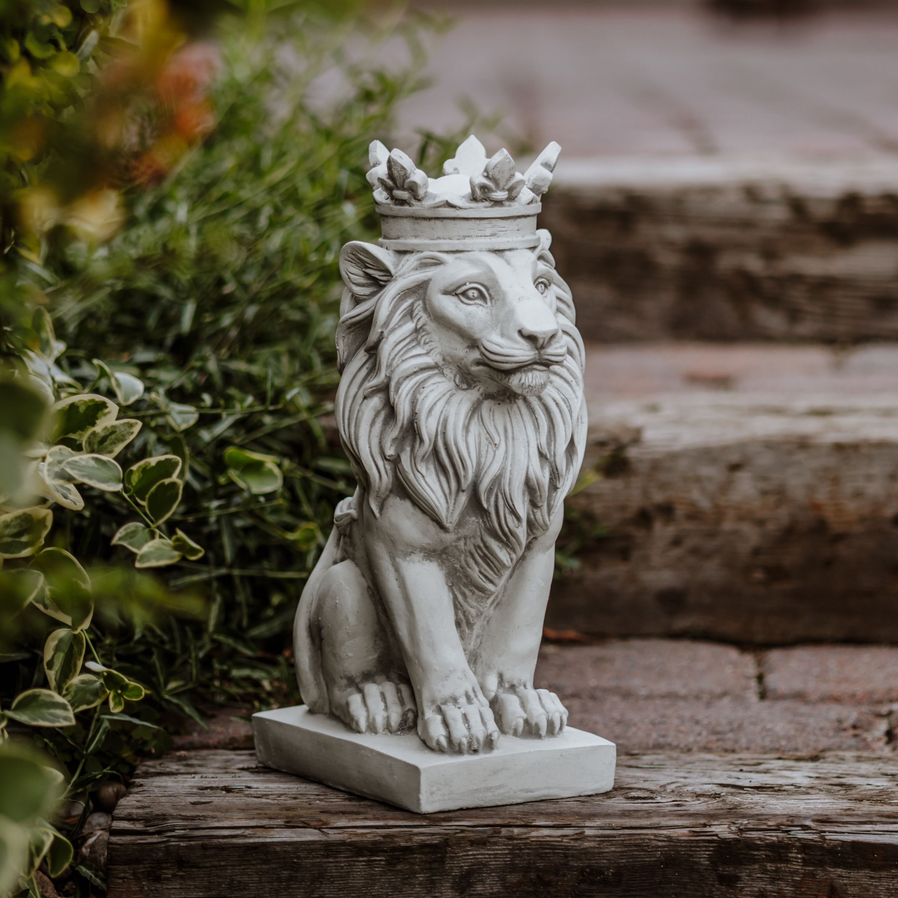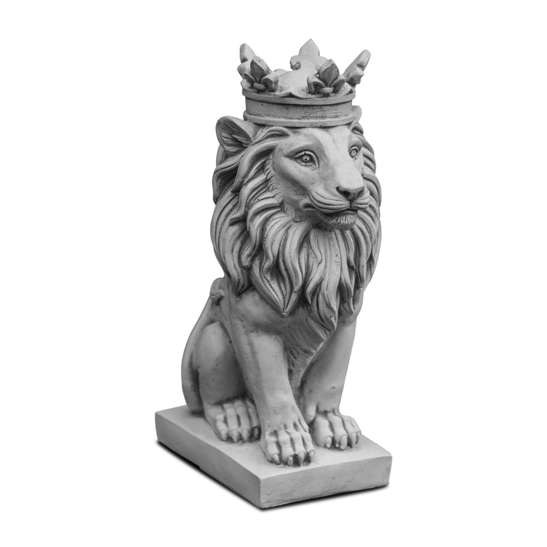 Dekorative Löwenfigur mit Krone, Löwe Steinfigur, Steinguss, 36 cm Höhe, 9 kg