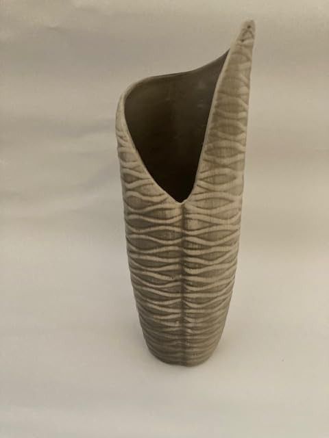 Dekorative Vase Blumenvase geriffelt Stone-Creme-aus Keramik 26 x 9 cm