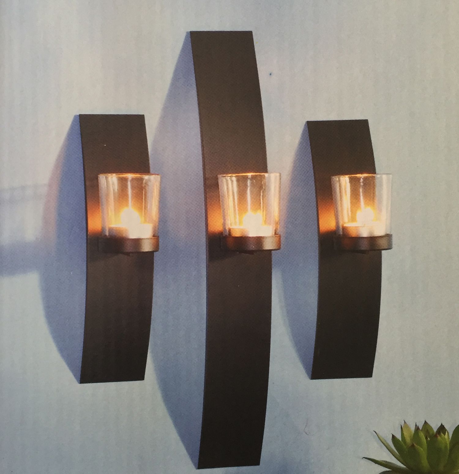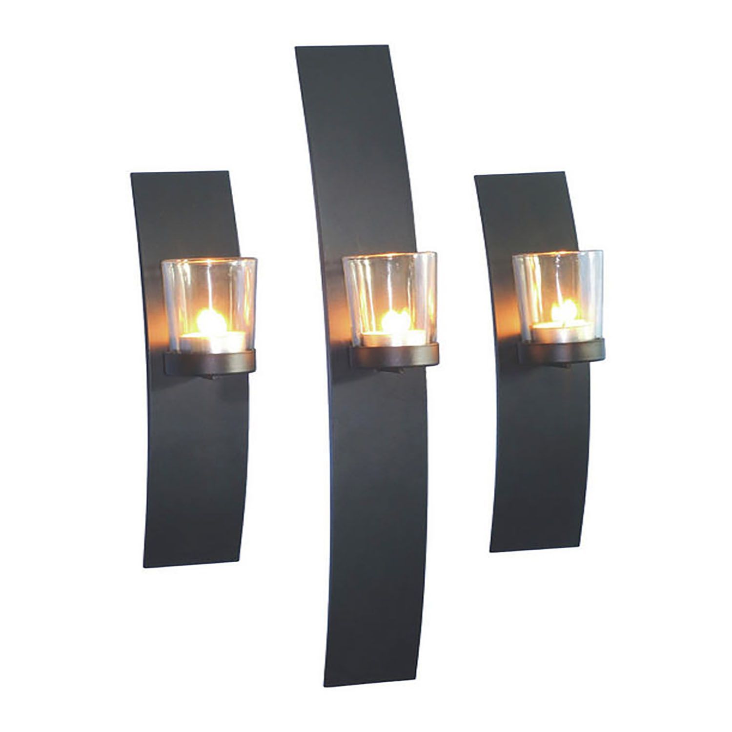 Dekorative Wandkerzenhalter für Teelichter 3er Set aus Metall mit Glaszylinder