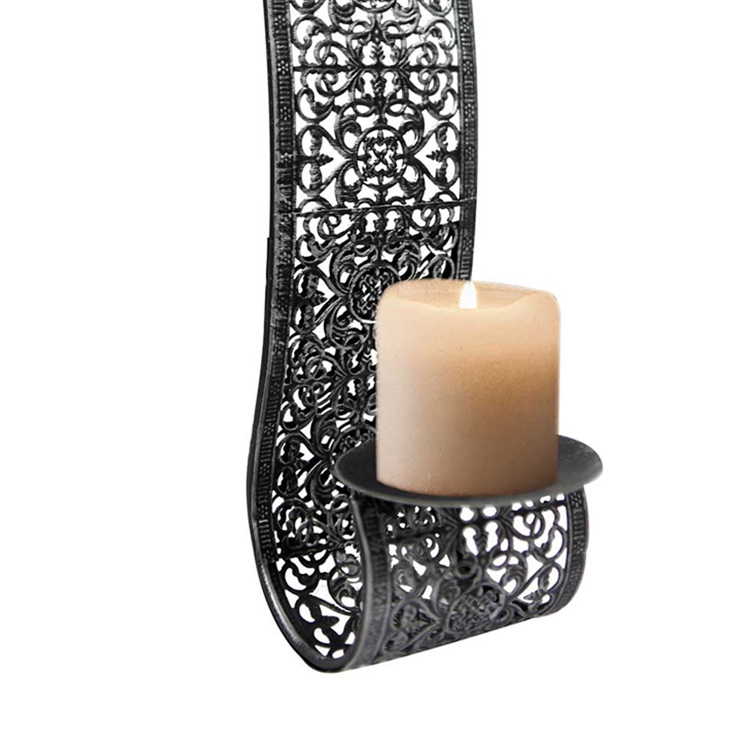 Dekoratives 2er Set Wandkerzenhalter für Stumpenkerzen aus Metall Schwarz/silber
