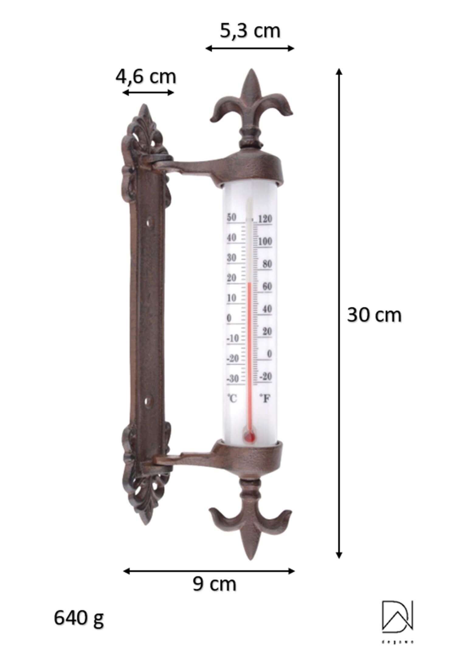 Dekoratives Gusseisen Thermometer drehbar – Fensterrahmen Deko für außen & innen