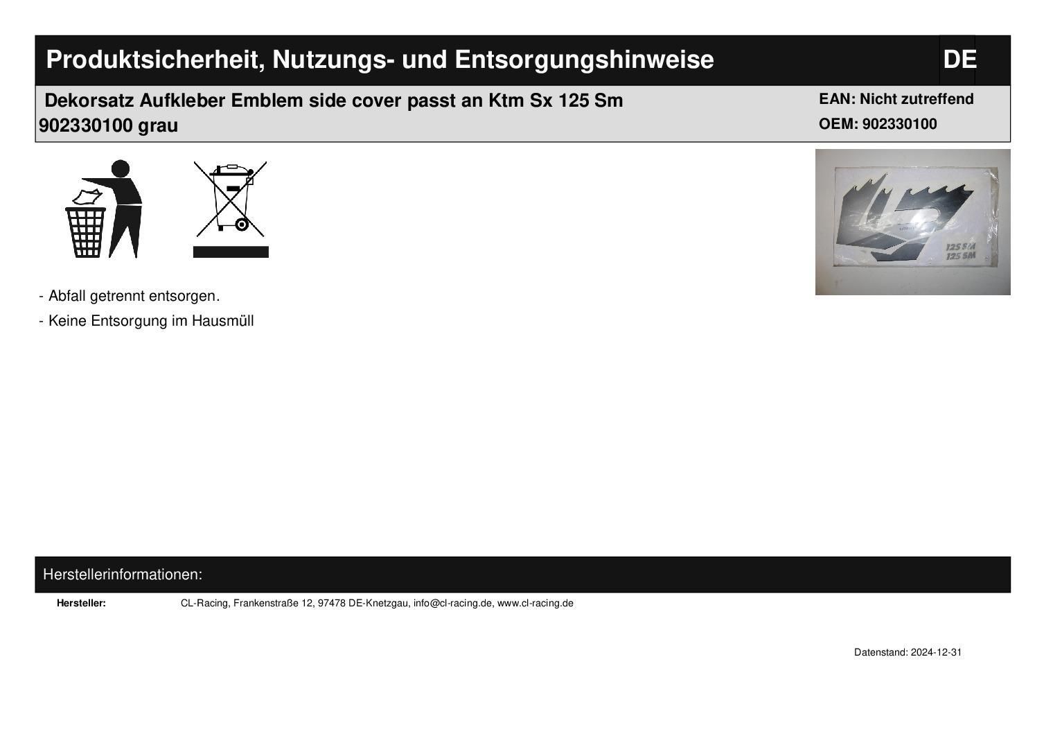 Dekorsatz Aufkleber Emblem side cover passt an Ktm Sx 125 Sm 902330100 grau In dieser Auktion gibt es folgenden Artikel zu kaufen: Emblem (siehe Foto) Modell: passend für Ktm SX SM 125 Bj.: unbekannt Lieferumfang: siehe Foto Artikelzustand: neu aus Geschäftsauflösung; Sticker liegen schon länger, da