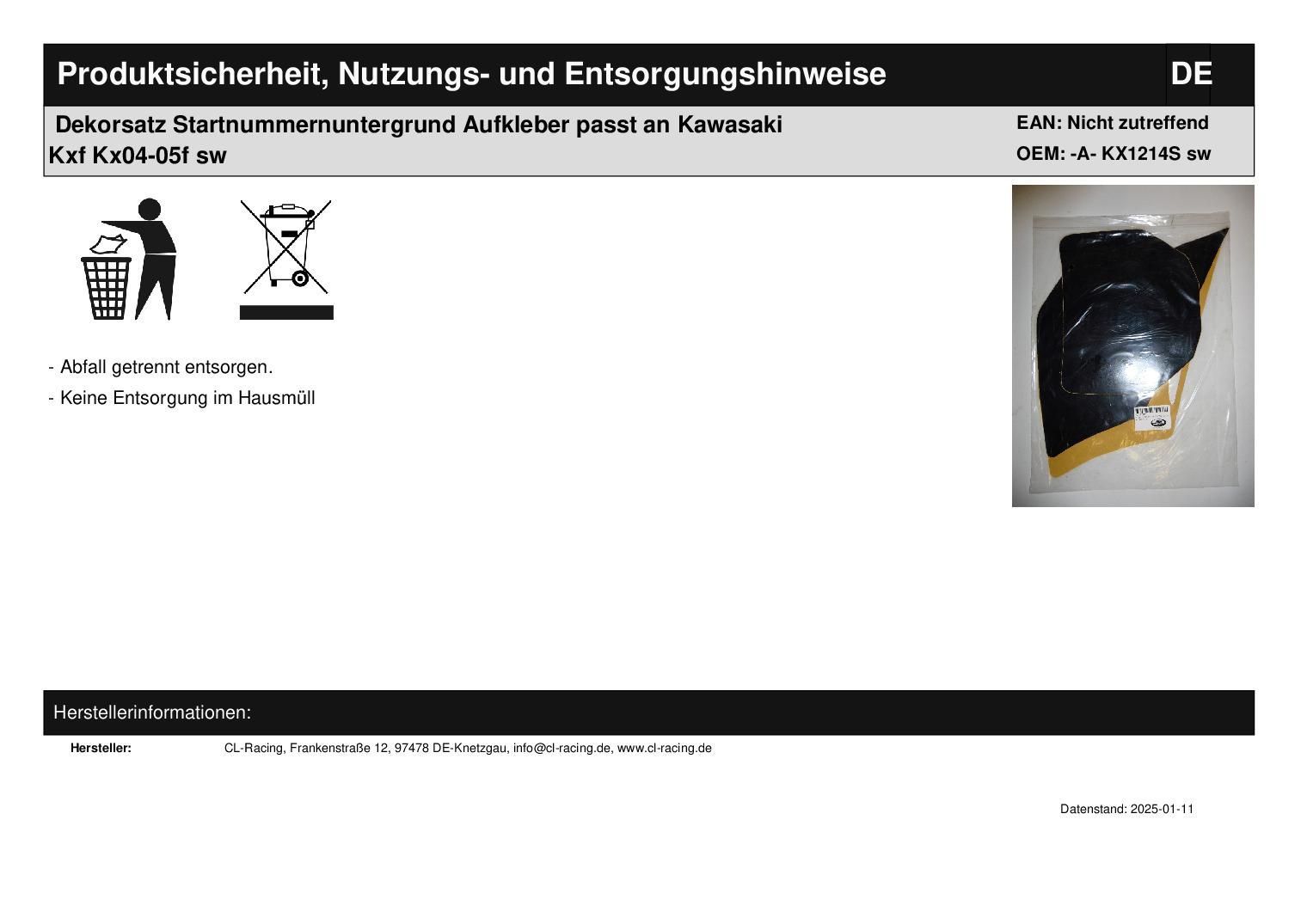 Dekorsatz Startnummernuntergrund Aufkleber passt an Kawasaki Kxf Kx04-05f sw