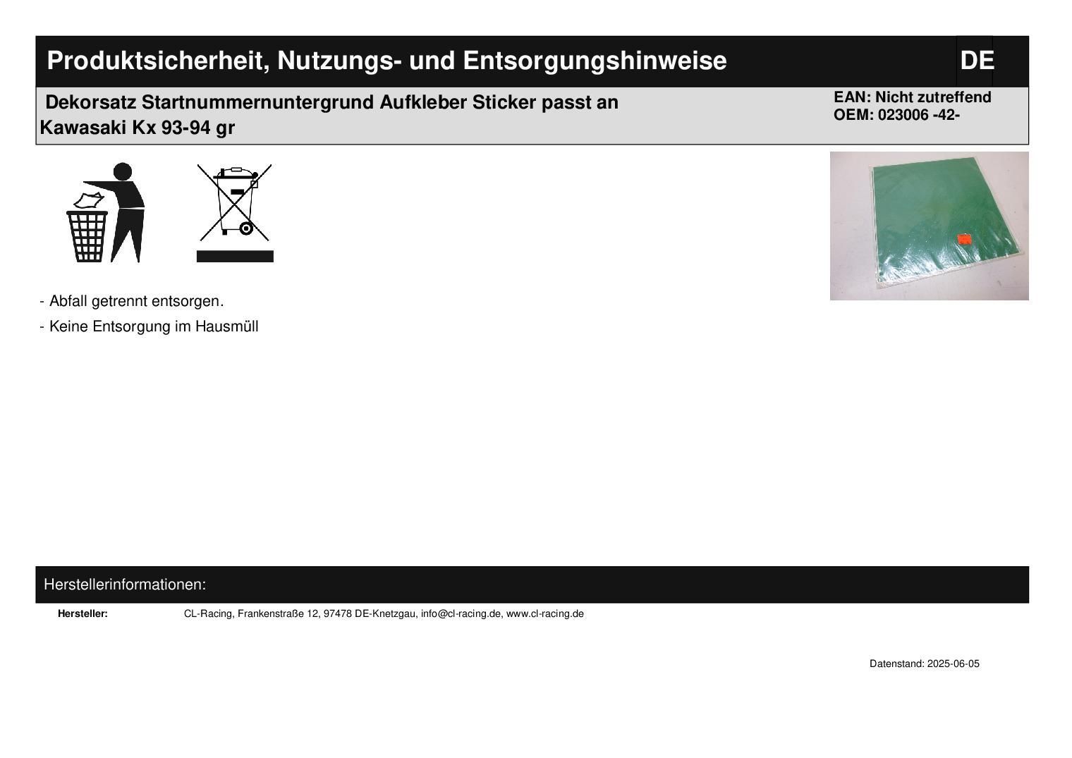 Dekorsatz Startnummernuntergrund Aufkleber Sticker passt an Kawasaki Kx 93-94 gr