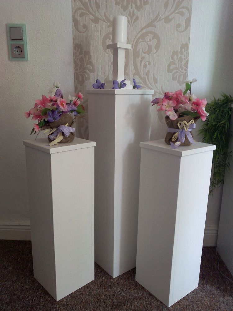 Dekosäulen 3er Set 20cm Tiefe, Dekosäule weiß, Podest, Gesims