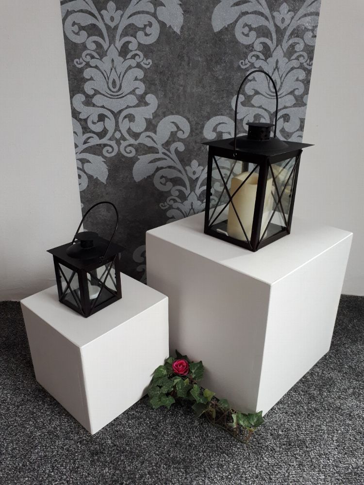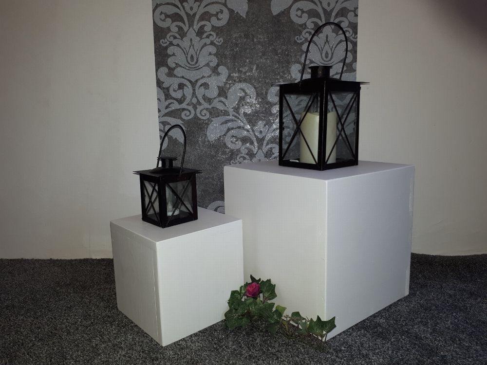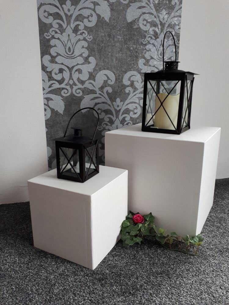Dekosäulenset weiß, Dekosäulen Vollholz, Dekowürfel, Podest