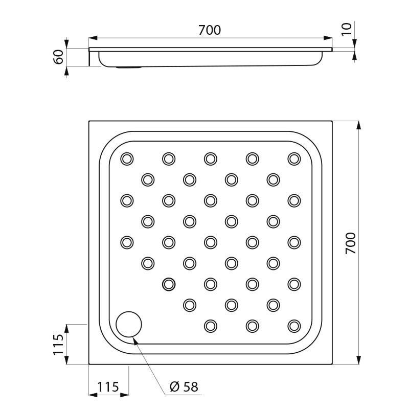 Delabie Brausetasse 700x700 Höhe 60 mm Edelstahl 1.4301 satiniert