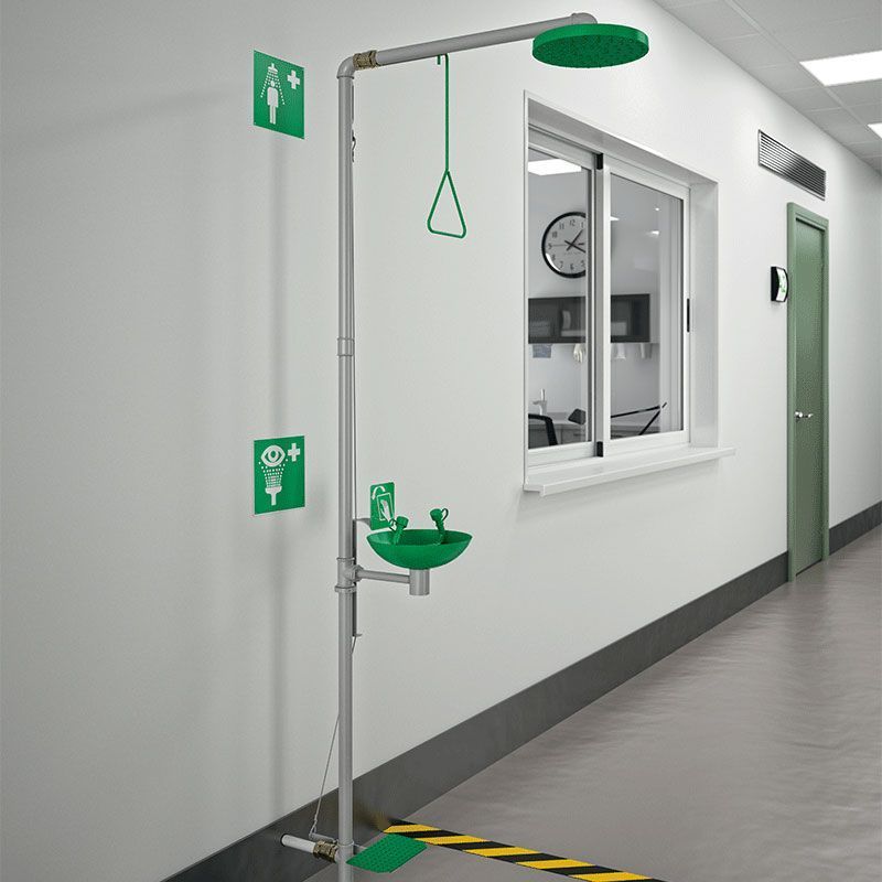 Delabie Kombi Sicherheits-Augendusche u. Körperdusche auf Säule