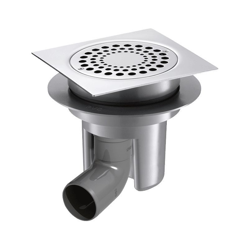 Delabie Rohfußboden-Ablauf 150x150 H verstellb., nschl-Bog. hori. D50