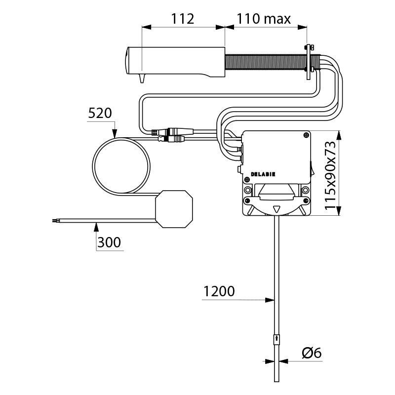 Delabie Seifensp. T4 verchr. Hw.-Mont. Schlauch L.1,2m, UP-Netzteil