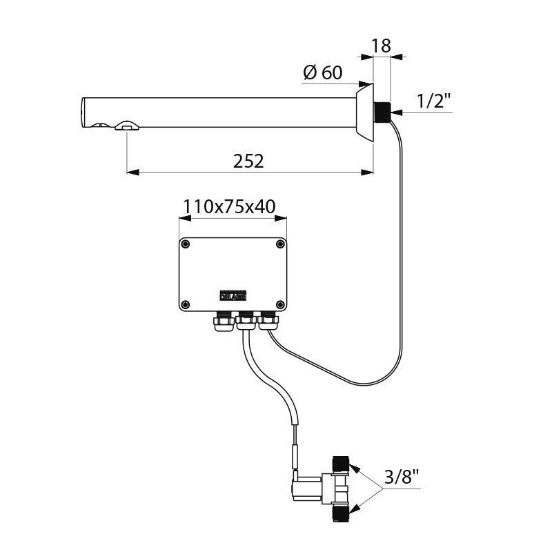 Delabie W. Vent. Binoptic G3/8B UP Ausl. L295mm Feststr. m. Trafo