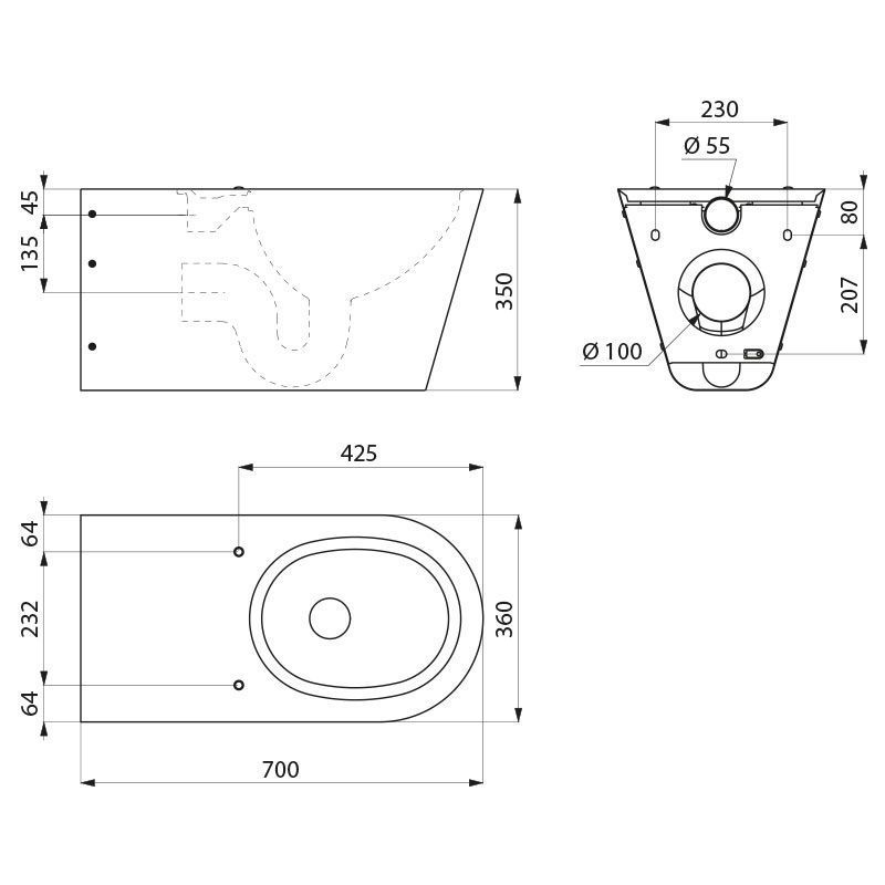 Delabie WC 700 S wandh. Anschl. von hinten Edelstahl Werkstoff 1.4301 satiniert - Bar
