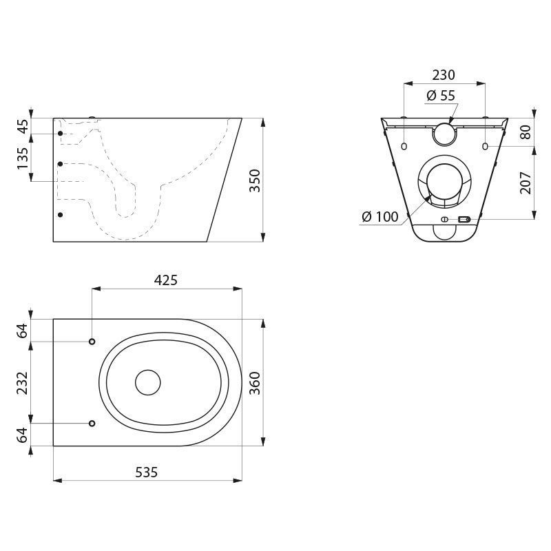 Delabie WC S21 S wandh. Anschl. von hinten Edst. 1.4301 satiniert
