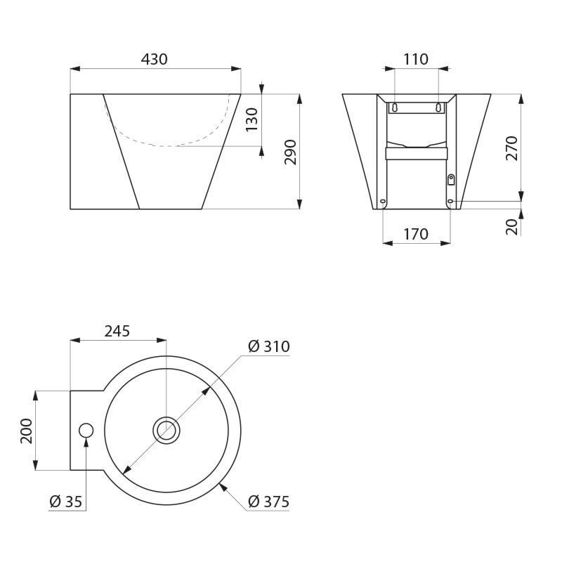 Delabie WT MINI BAILA Hl. D35 mittig ohne Überlauf Edst. matt schw