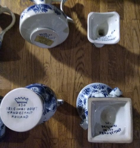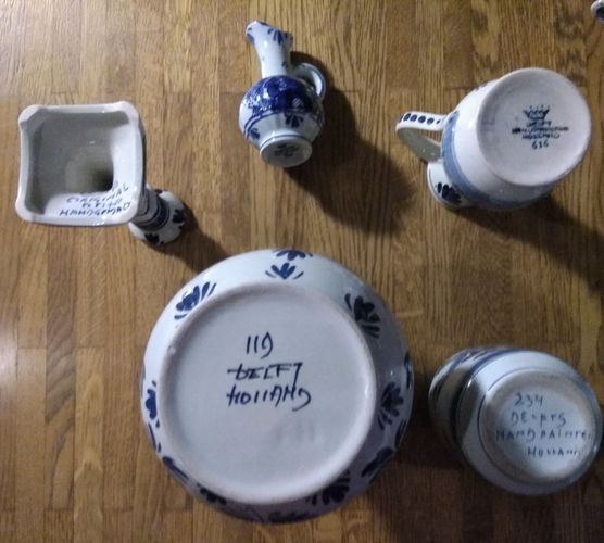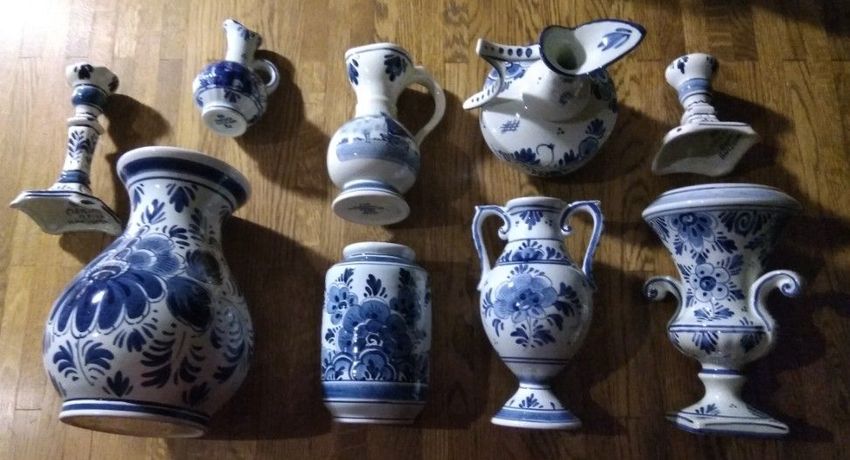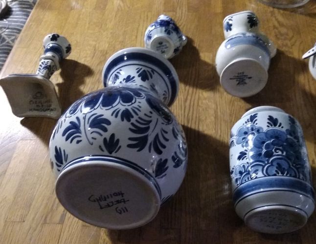 1 Vase oder 1 Kerzenständer zur freien Auswahl Delft Holland handgemalt verschiedene Keramik Beschreibung der Einzelteile erfolgt gemäß Bild 1 beginnend mit der hinteren Reihe von links nach rechts danach die vordere Reihe ebenfalls von links nach rechts zuletzt als Nr. 10 die Henkelvase mit den bei