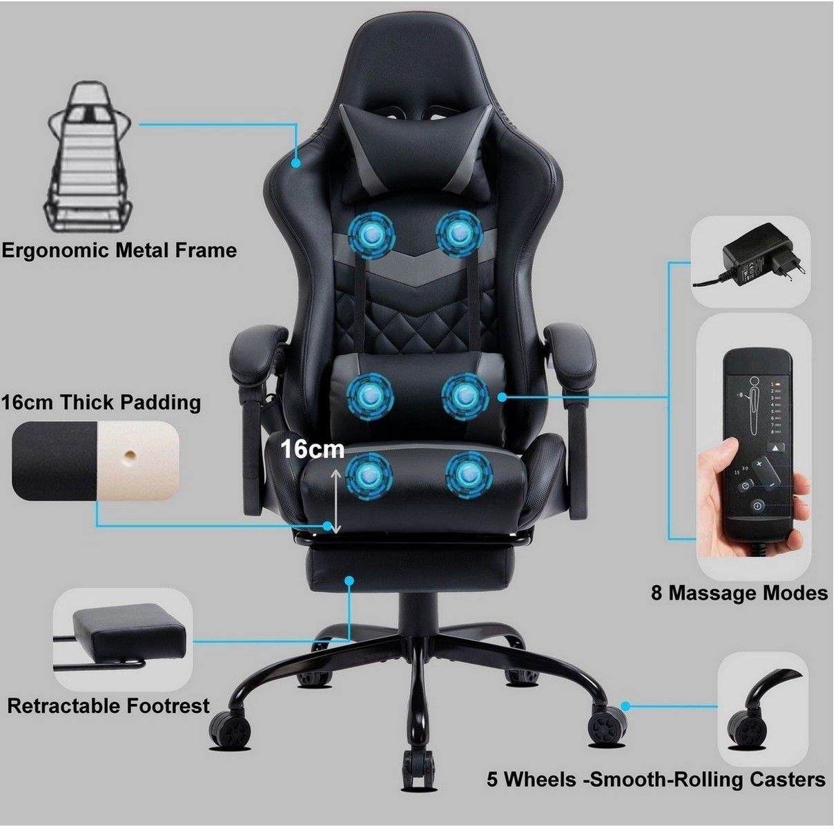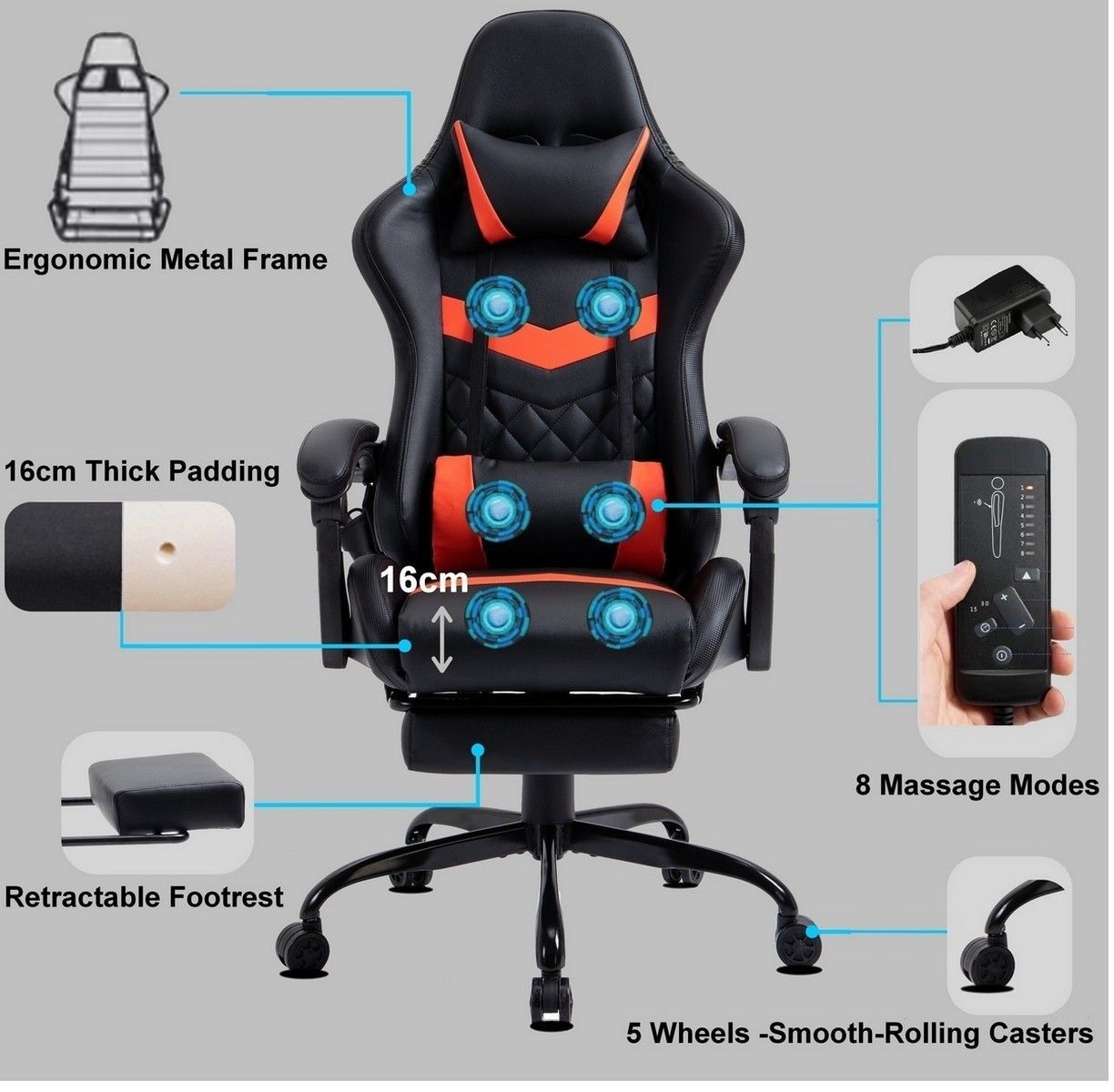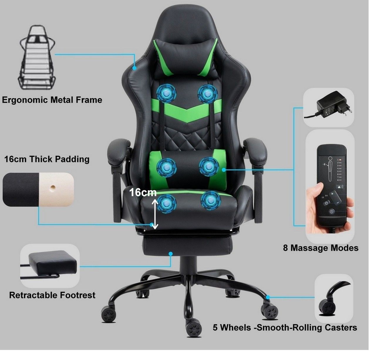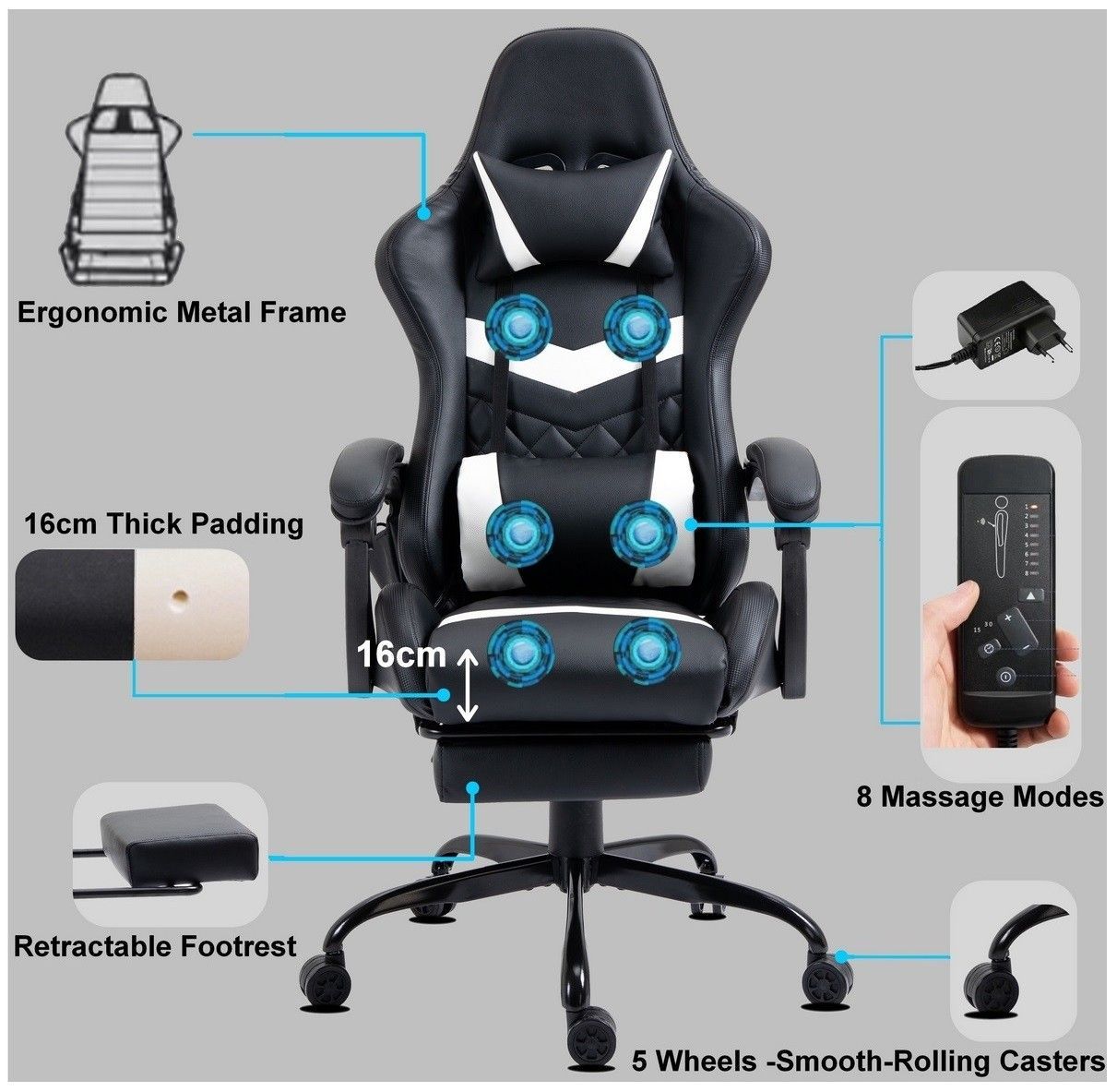 Delman Gaming Stuhl Bürostuhl Computerstuhl Massagefunktion Chef Sessel 0037