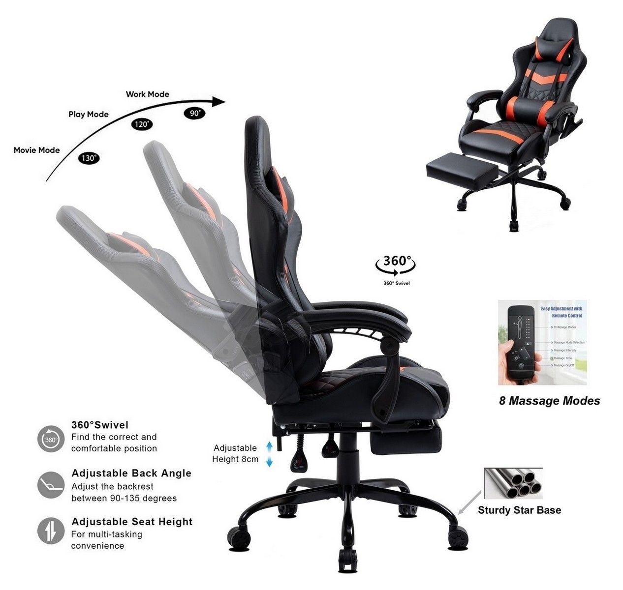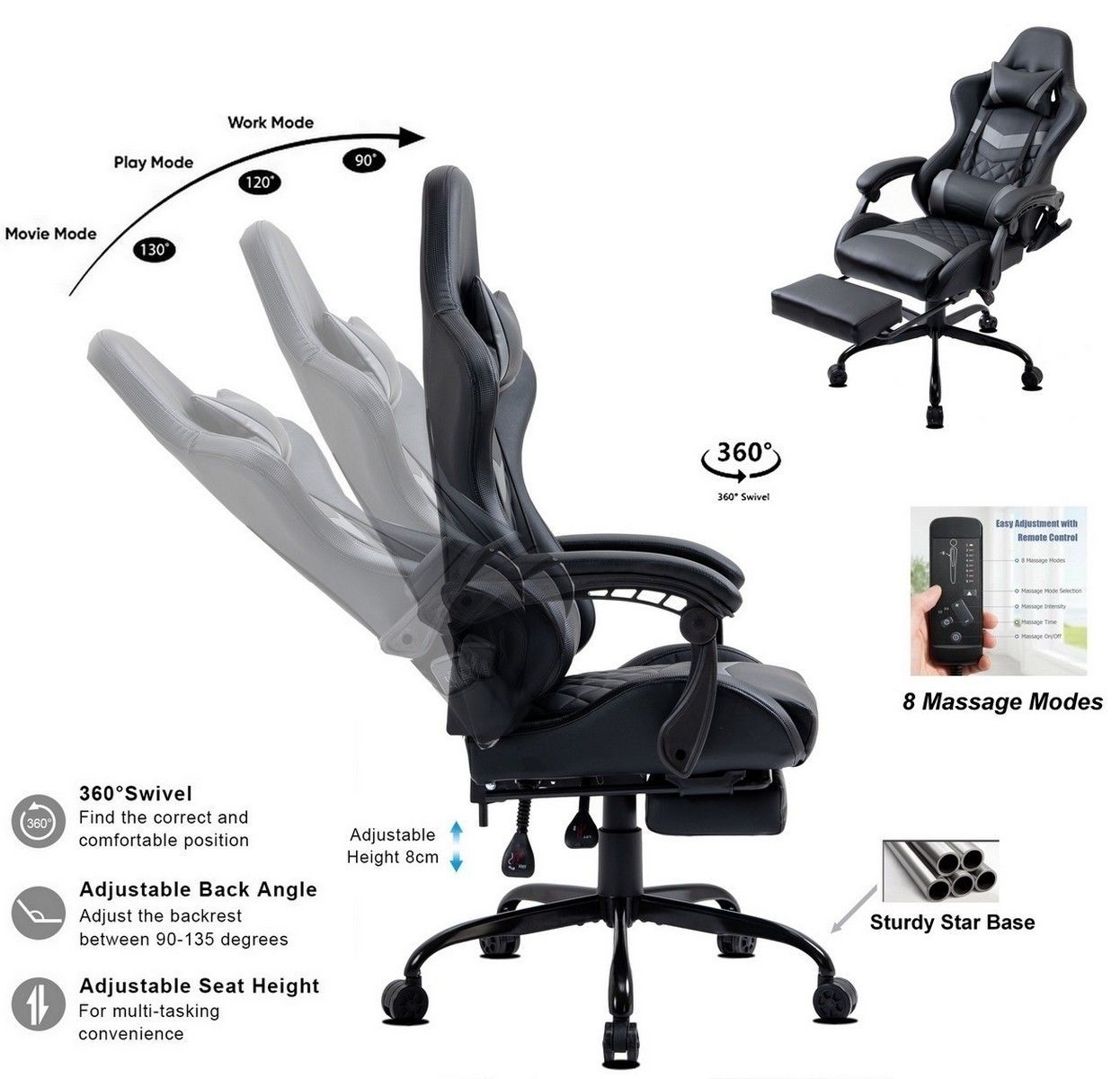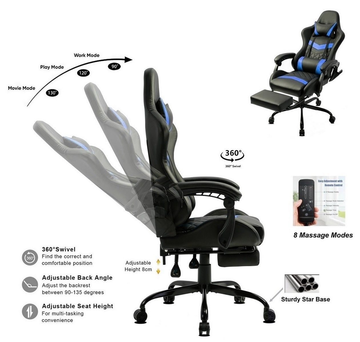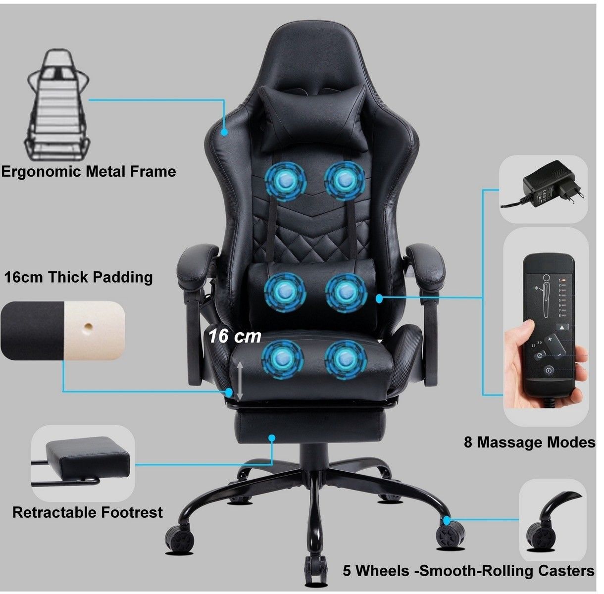 Delman Gaming Stuhl Bürostuhl Computerstuhl Massagefunktion Chef Sessel 0037