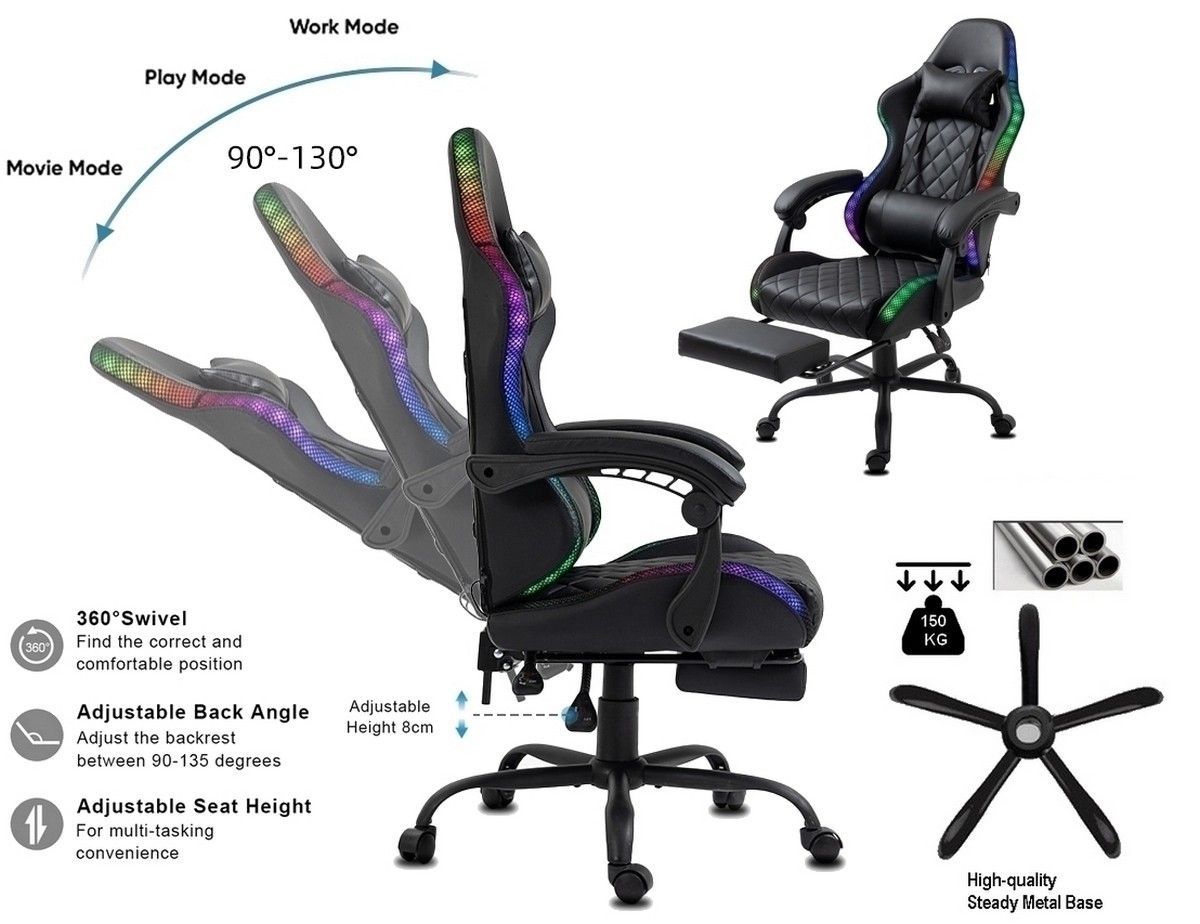 Delman RGB LED Gaming Stuhl Bürostuhl Computerstuhl Chef Sessel 0055