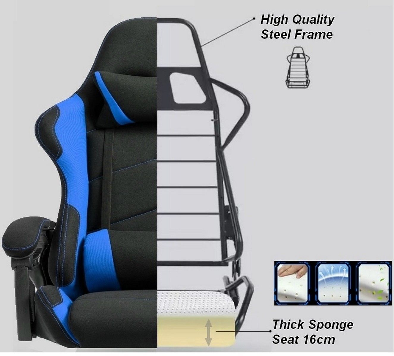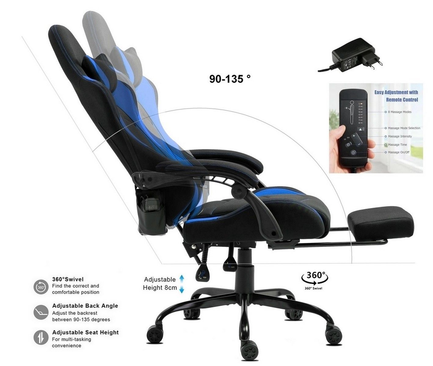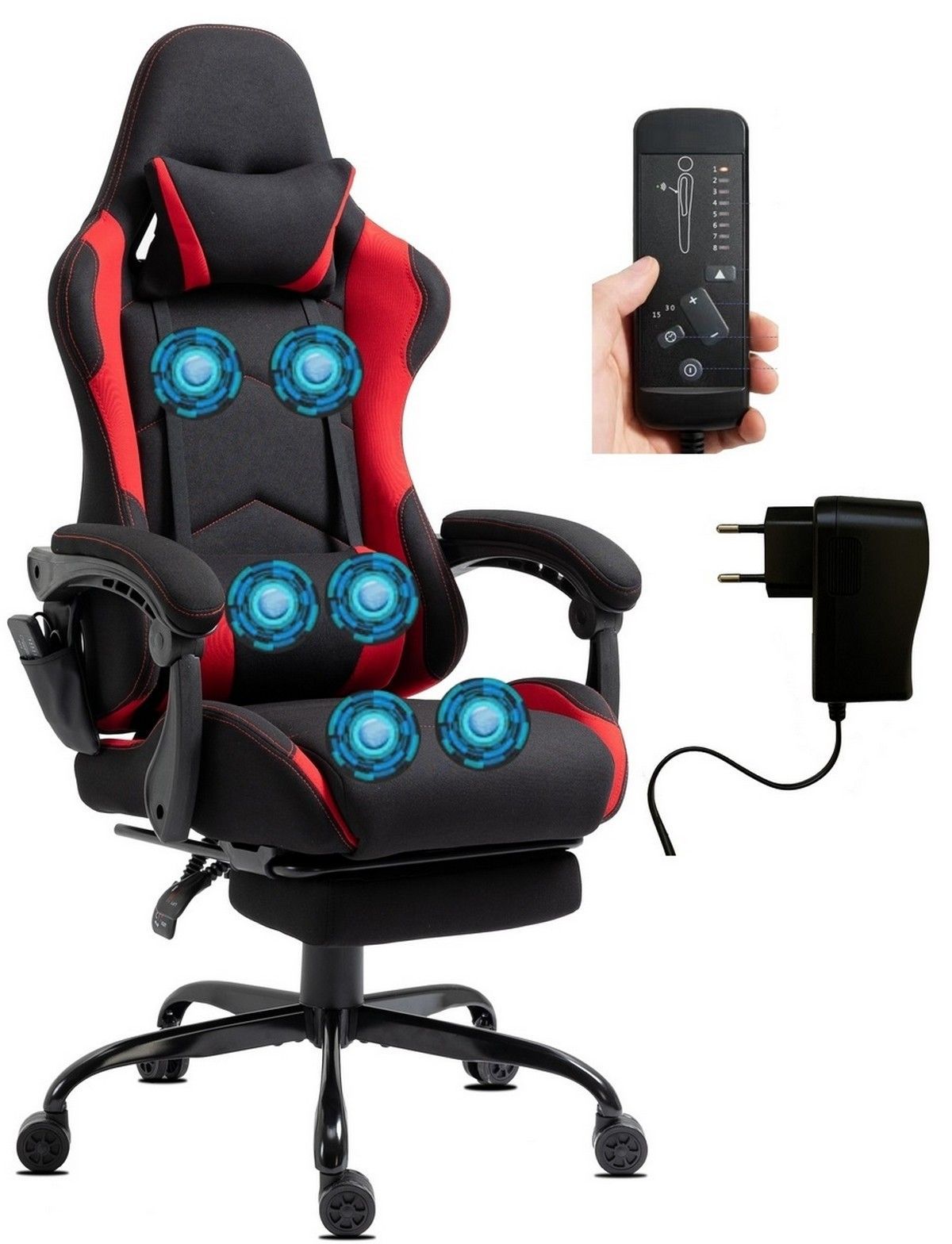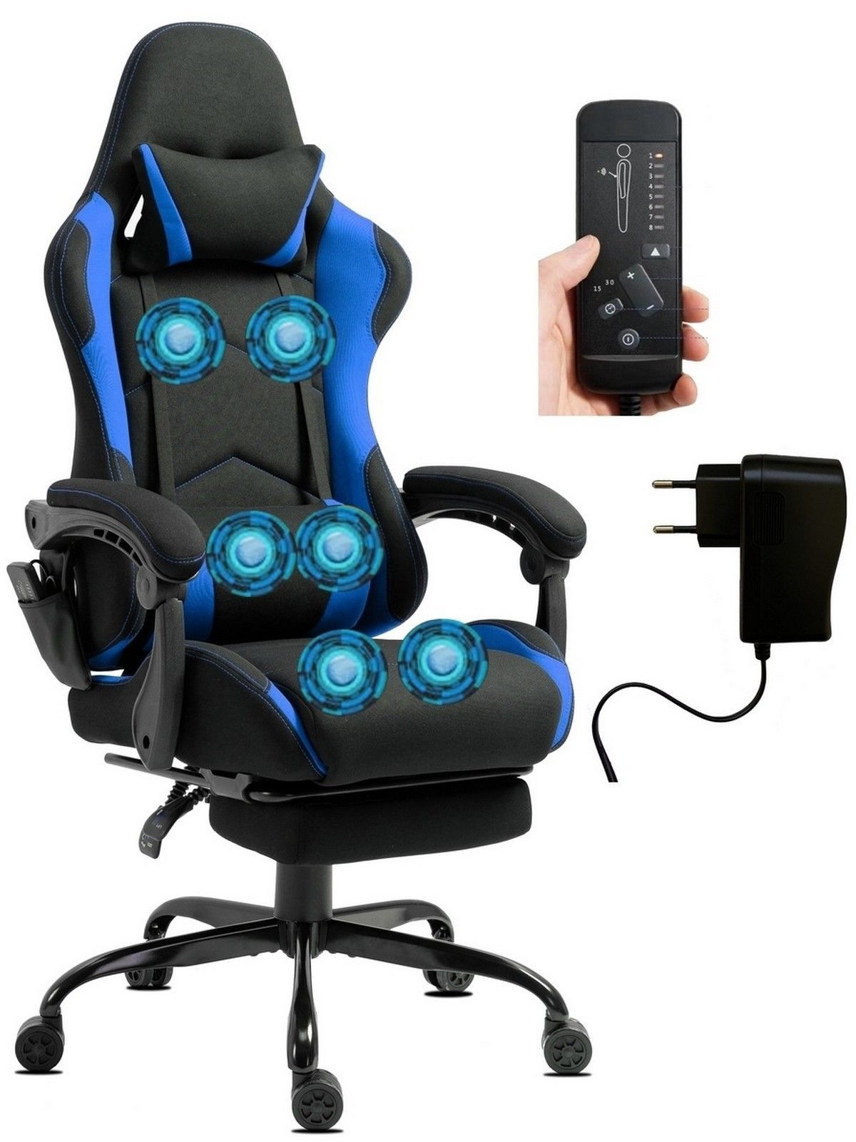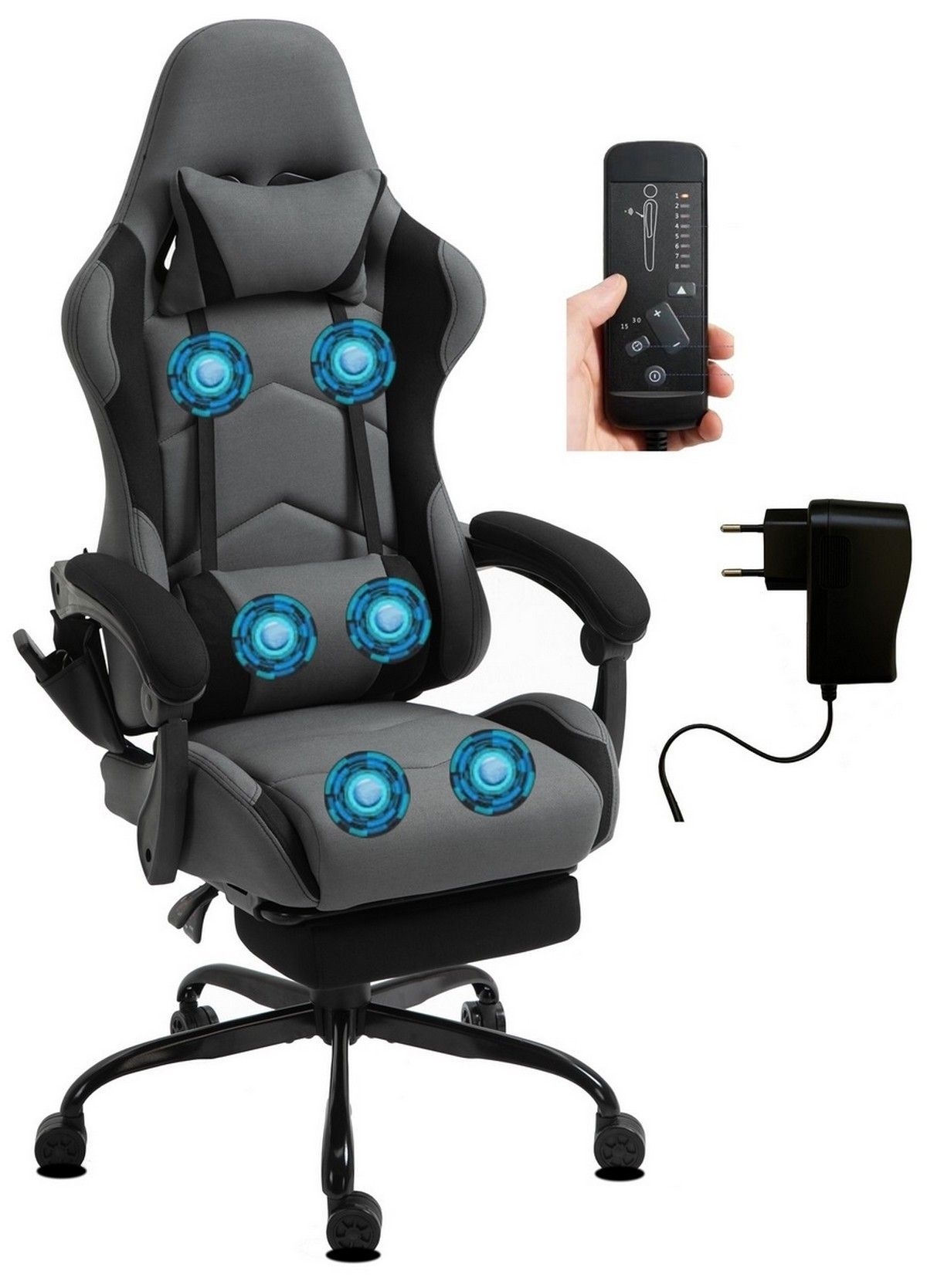 Delman Stoff Gaming Stuhl Bürostuhl Computerstuhl Massagefunktion Metallfuß 0036