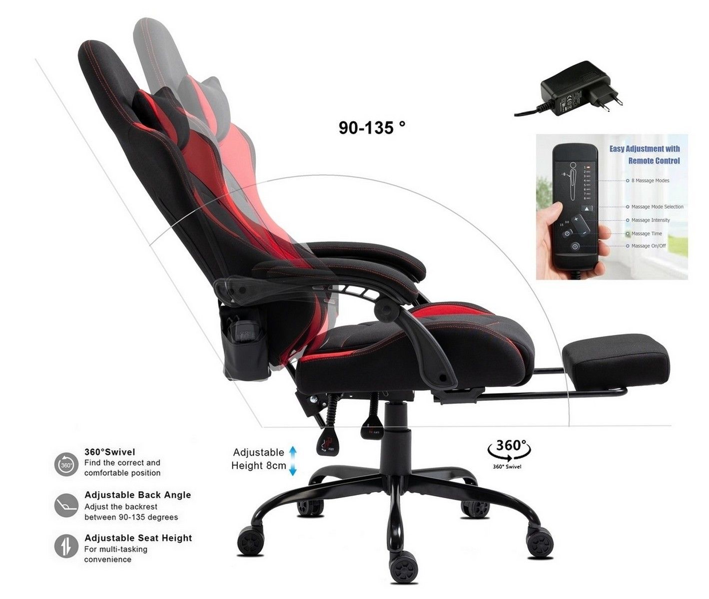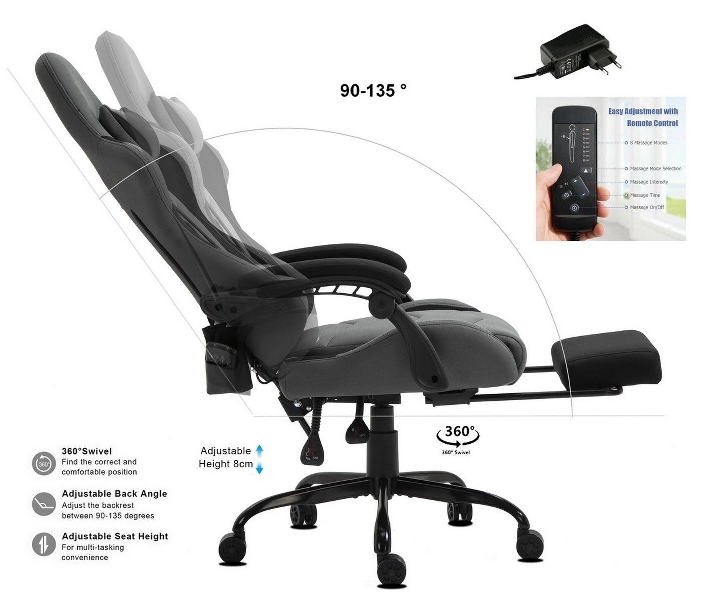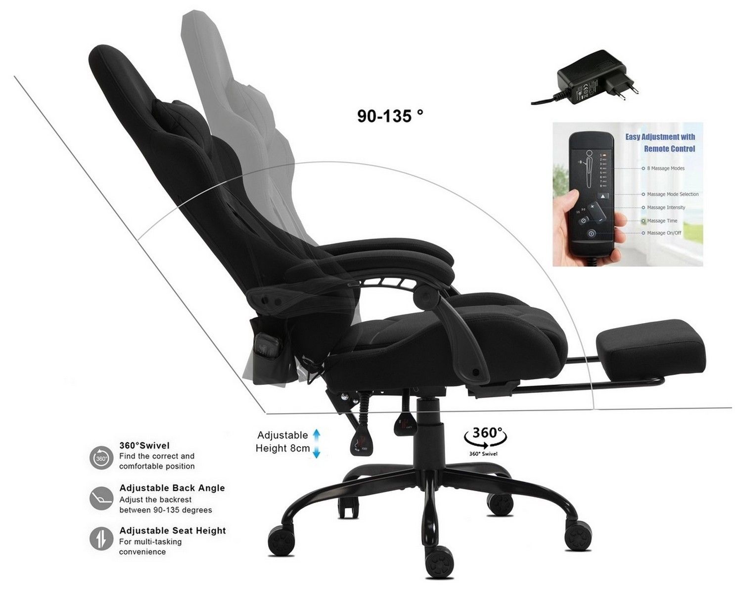 Robuste Stoff Massagefunktion Dicke Polsterung Fußablage Metalfuß