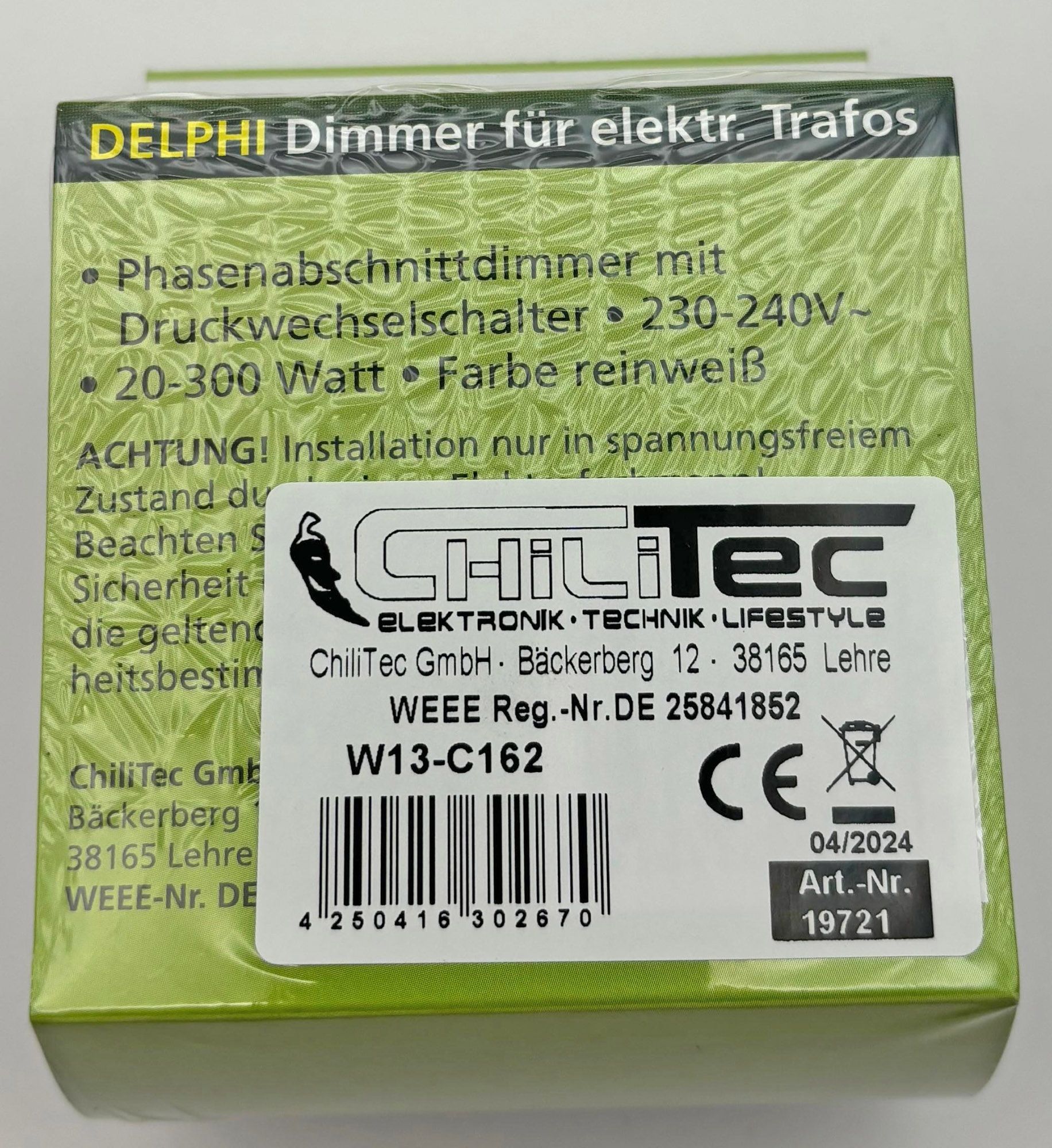 ChiliTec DELPHI Dimmer für elektronische Trafos 250V 300W, inkl. Rahmen, UP, weiß