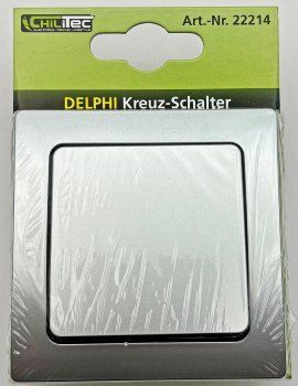 ChiliTec DELPHI Kreuzschalter 250V / 10A mit 1-fach Rahmen, Silber Grau