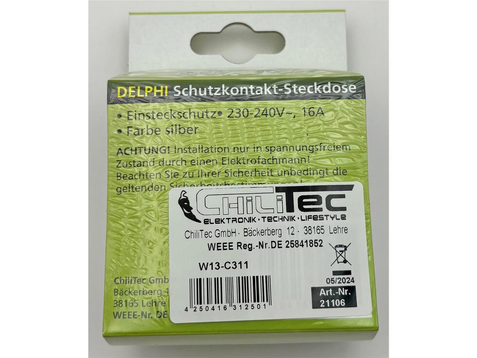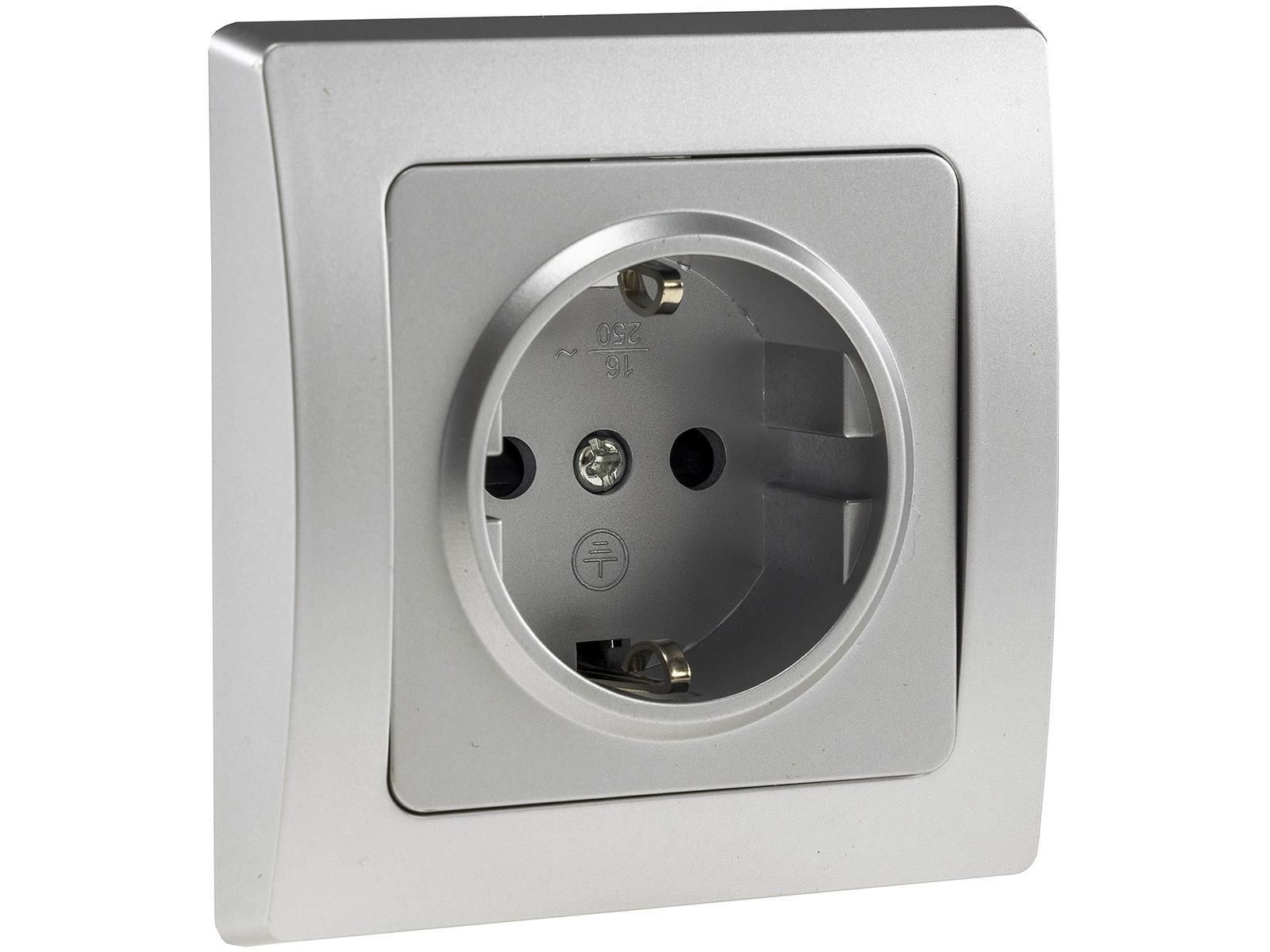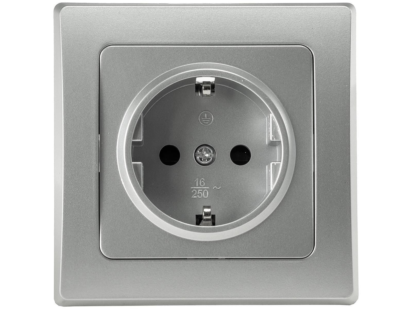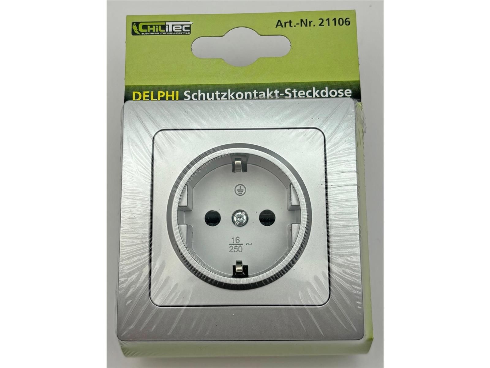 ChiliTec DELPHI Schutzkontakt-Steckdose 250V / 16A, inkl. Rahmen, UP, silber