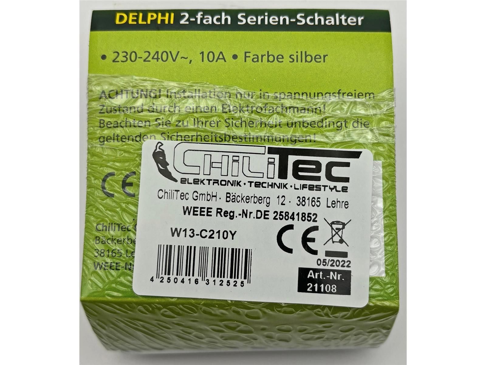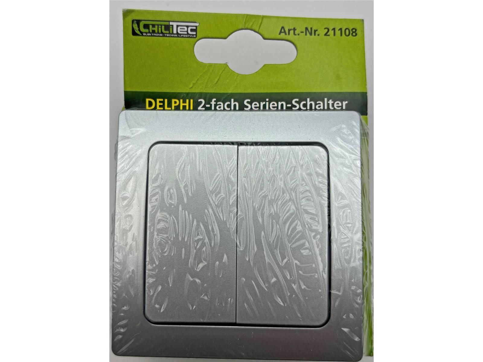 ChiliTec DELPHI Serien-Schalter 2-fach 250V / 10A, inkl. Rahmen, UP, silber