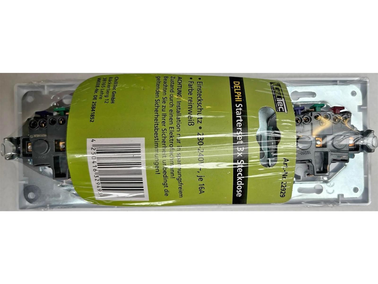 ChiliTec DELPHI Set 3 Steckdosen + 3-fach Rahmen 250V 16A, Steckanschluss, weiß