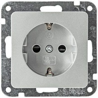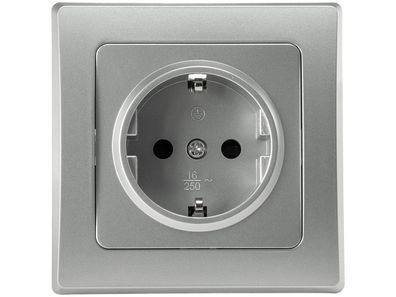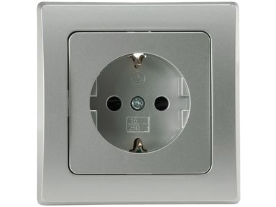 • DELPHI Schutzkontakt-Steckdose, silber 250V / 16A, inkl. Rahmen, Steckanschluss