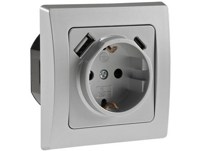 DELPHI Schutzkontakt-Steckdose, silber 250V / 16A, Unterputz, USB-C / PD