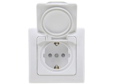 DELPHI Schutzkontakt-Steckdose IP40 250V / 16A, mit Deckel, UP, weiß