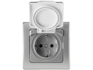 ChiliTec DELPHI Schutzkontakt-Steckdose IP44 250V AC / 16A, inkl. Rahmen, UP, silber