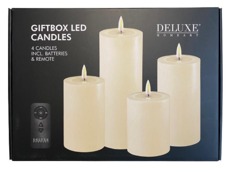 Deluxe LED 4-er Kerzenbox creme inkl. Fernbedienung und Batterien, GIFT-0002 1 Set