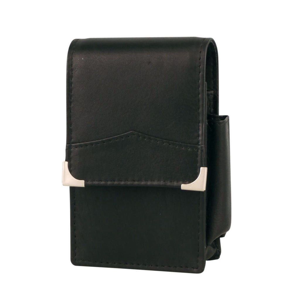 Dennis Dennis Zigarettenetui Leder schwarz elegante Klappe + Feuerzeugfach