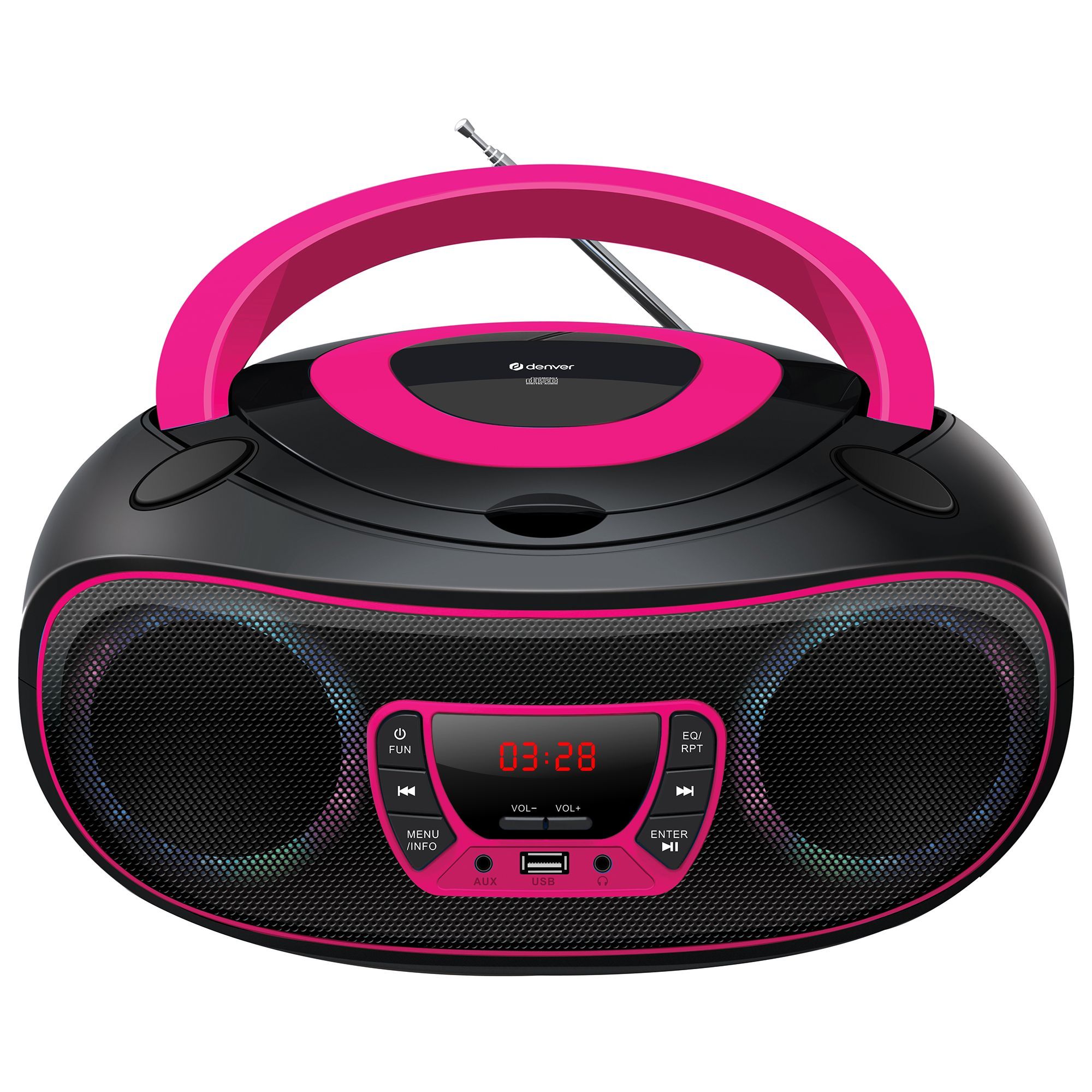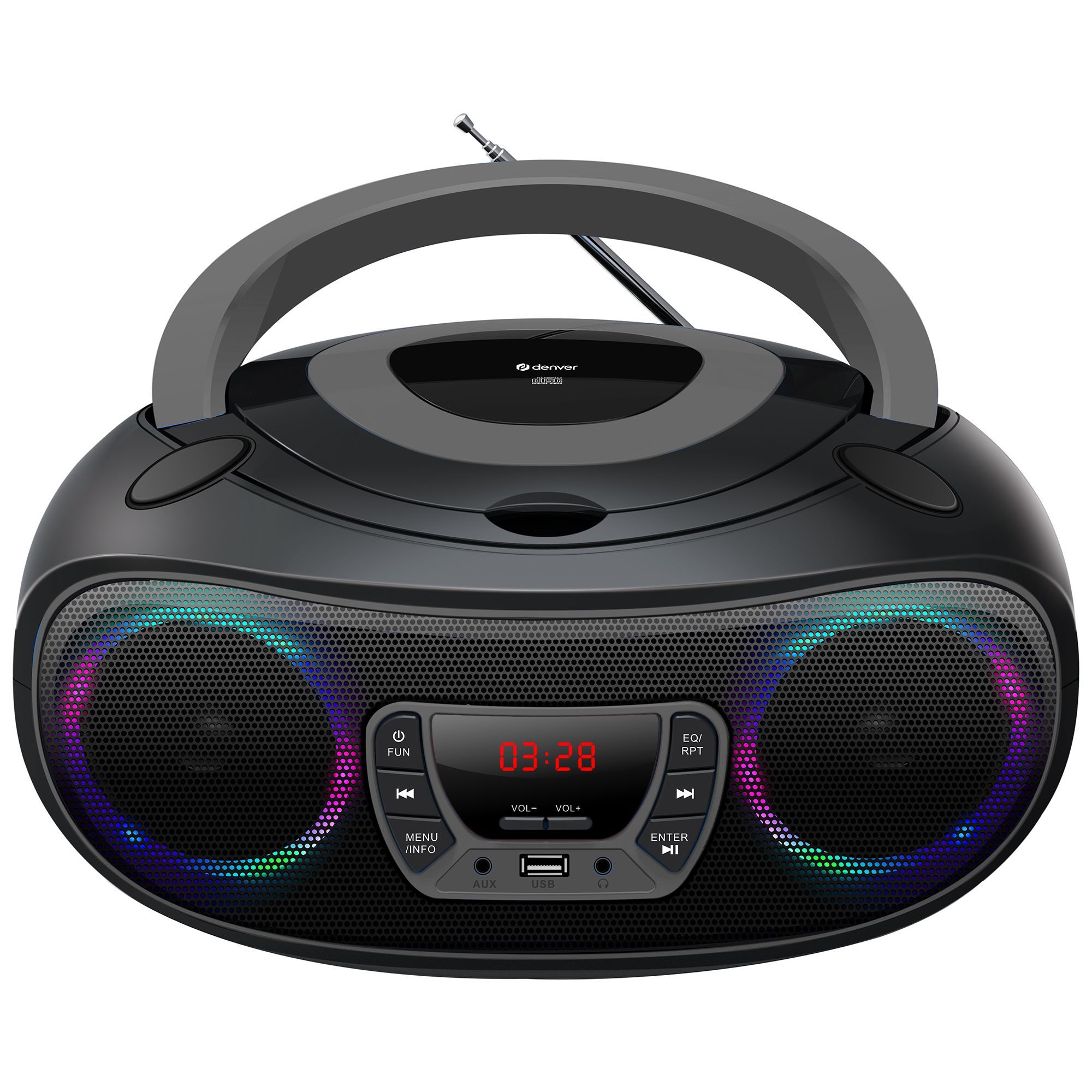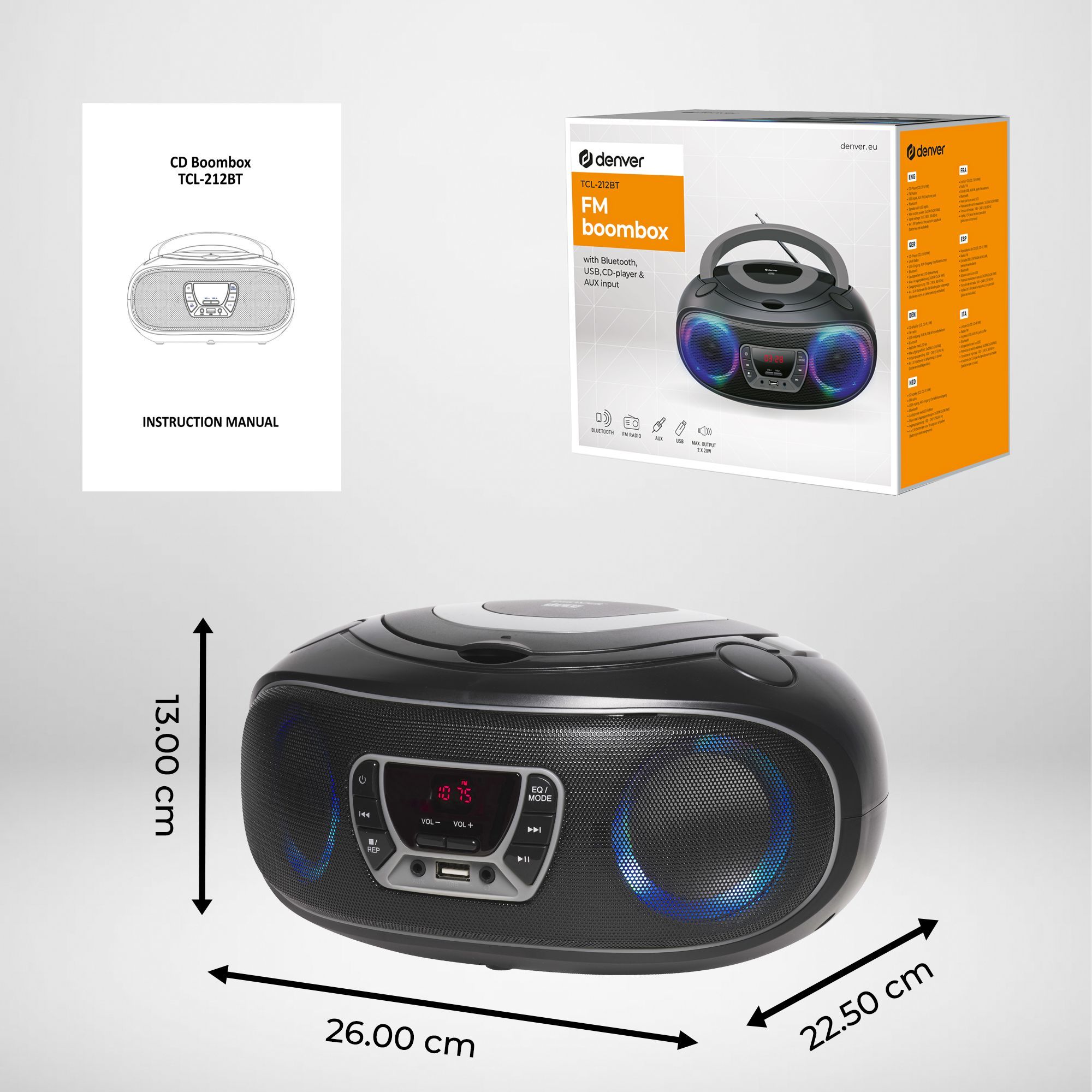 Denver TCL-212BT Boombox mit CD, Bluetooth, USB, AUX & LED-Lichteffekten