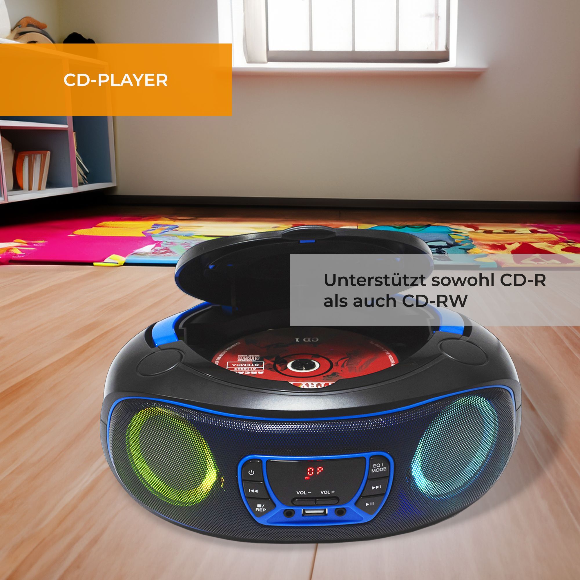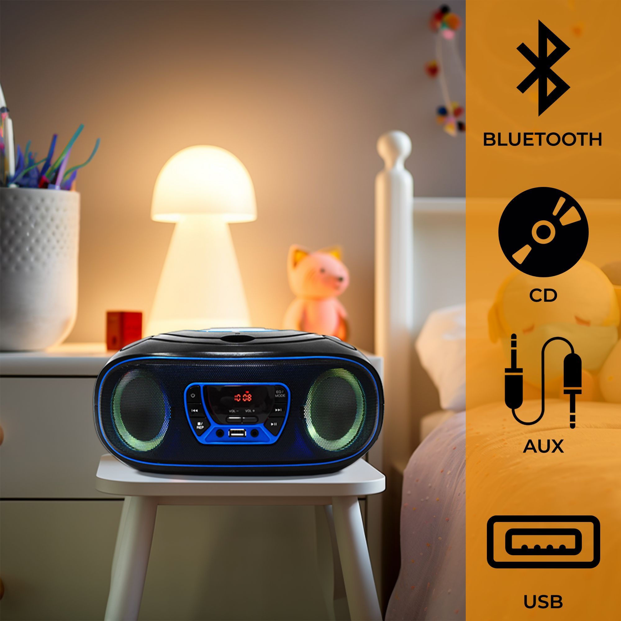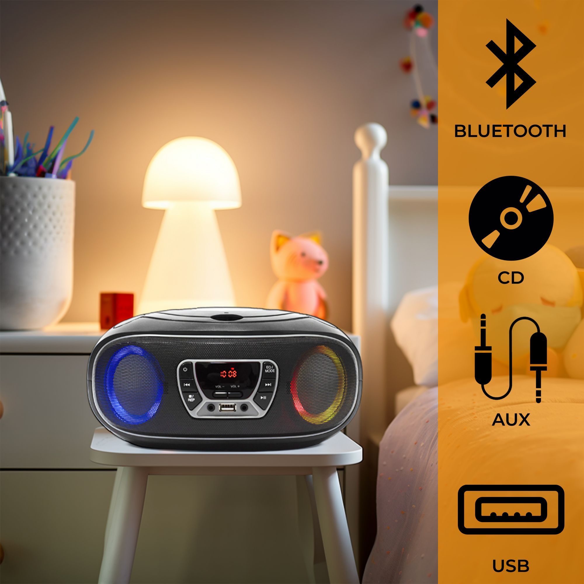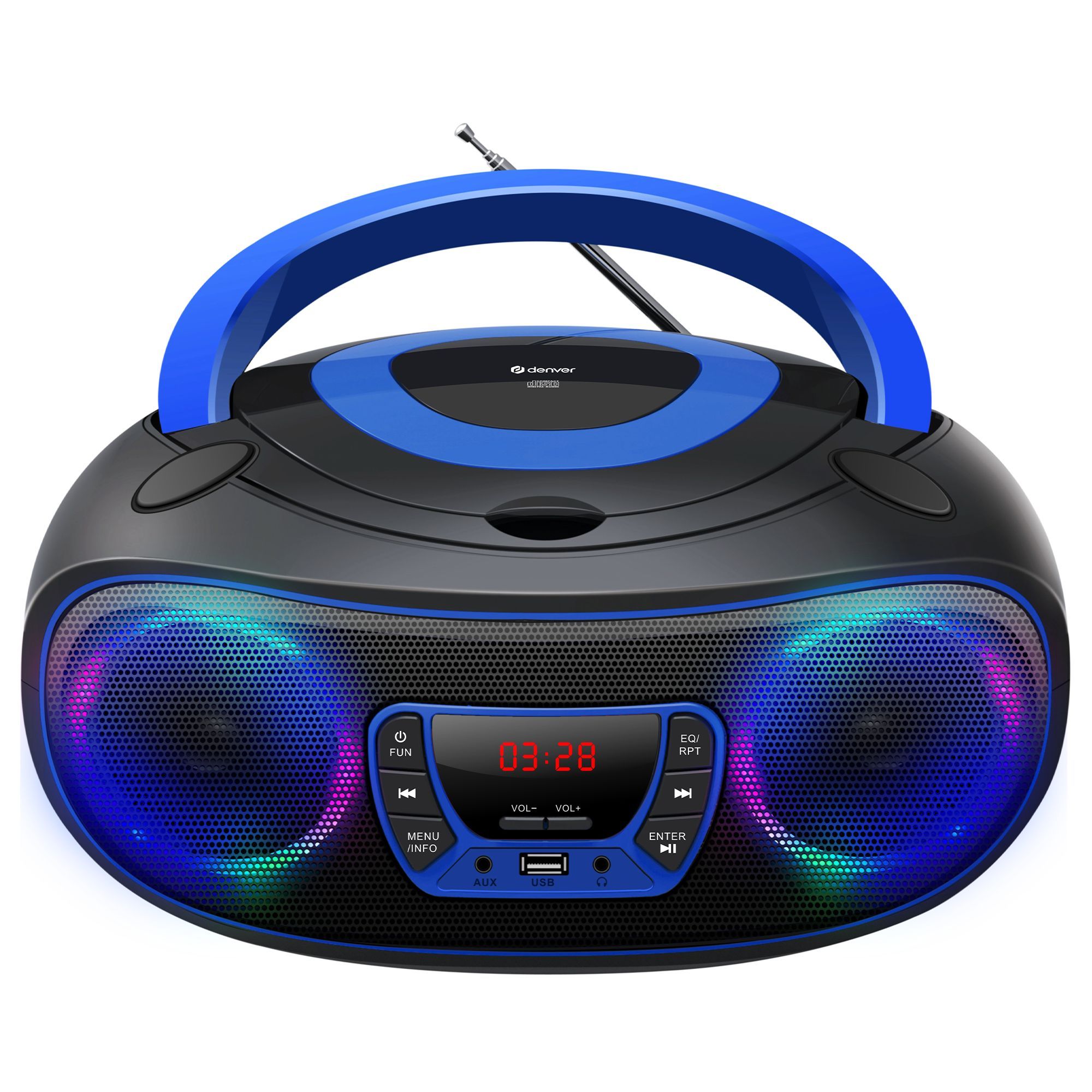 Denver TCL-212BT Boombox mit CD, Bluetooth, USB, AUX & LED-Lichteffekten