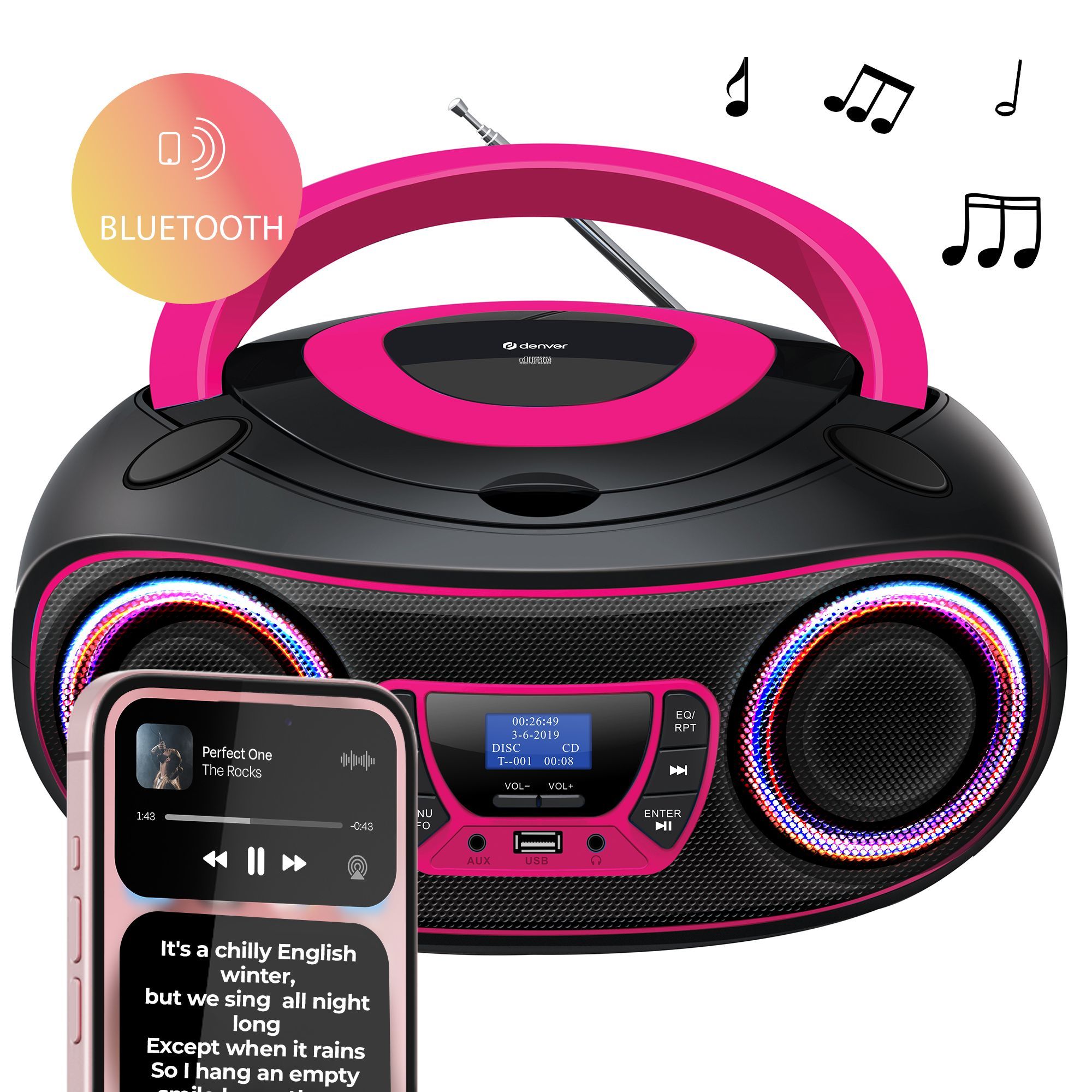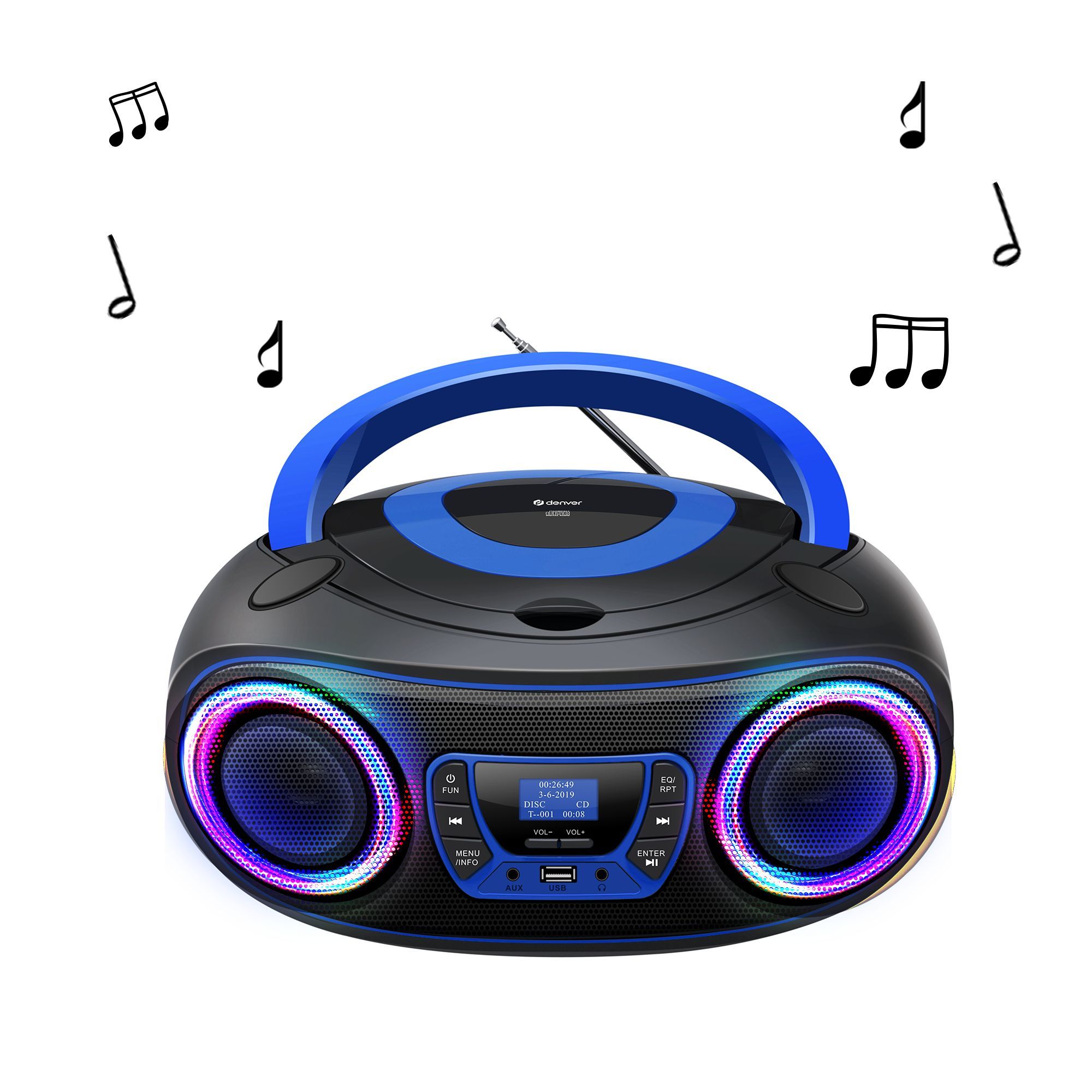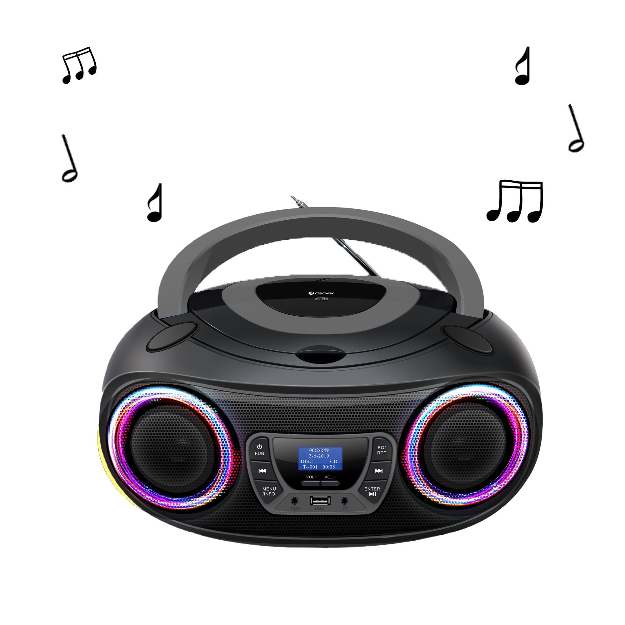 Denver TDB-212BT Boombox mit CD, Bluetooth, USB, AUX, DAB+/FM-Radio & LED-Licht