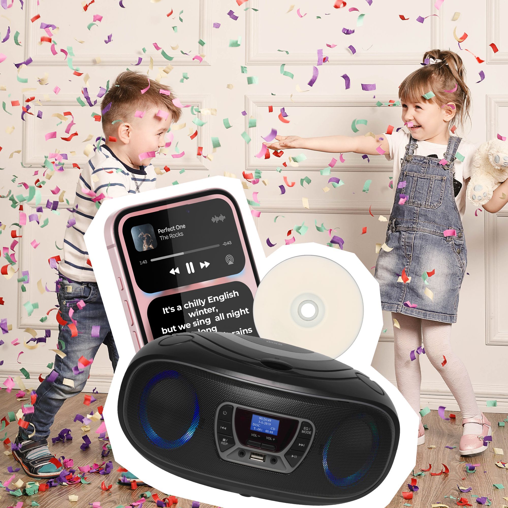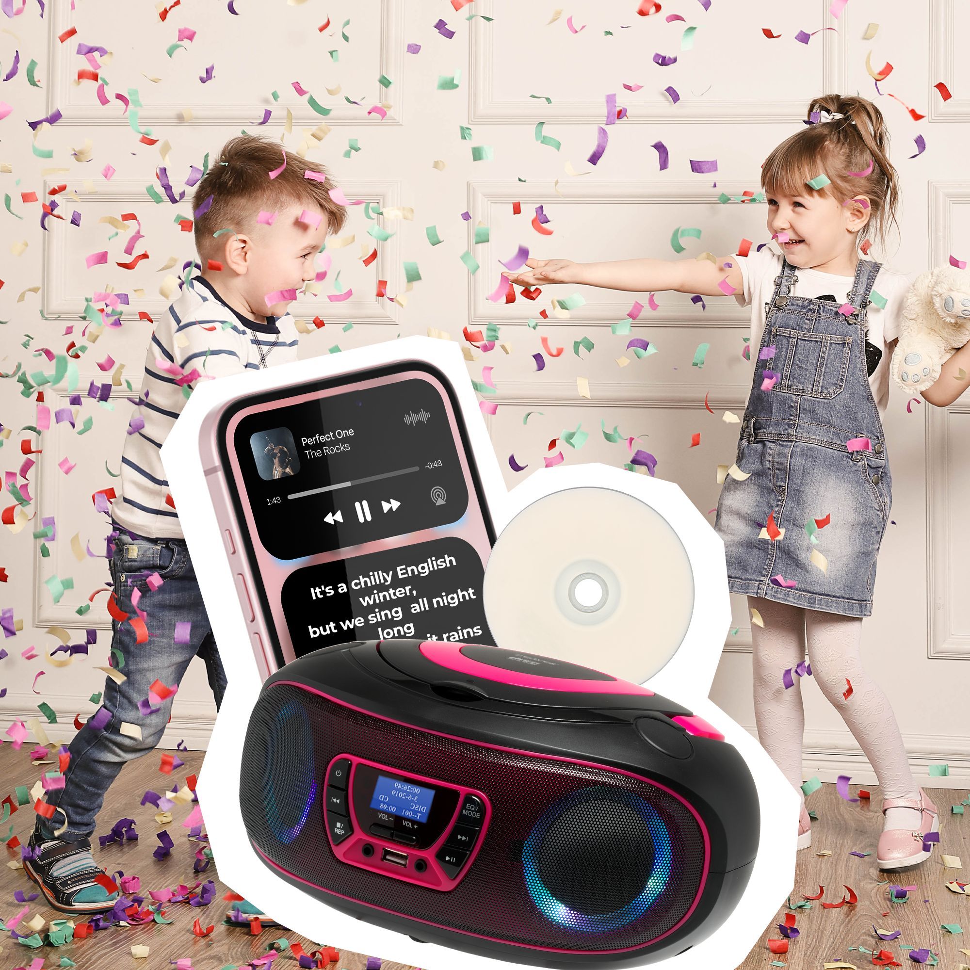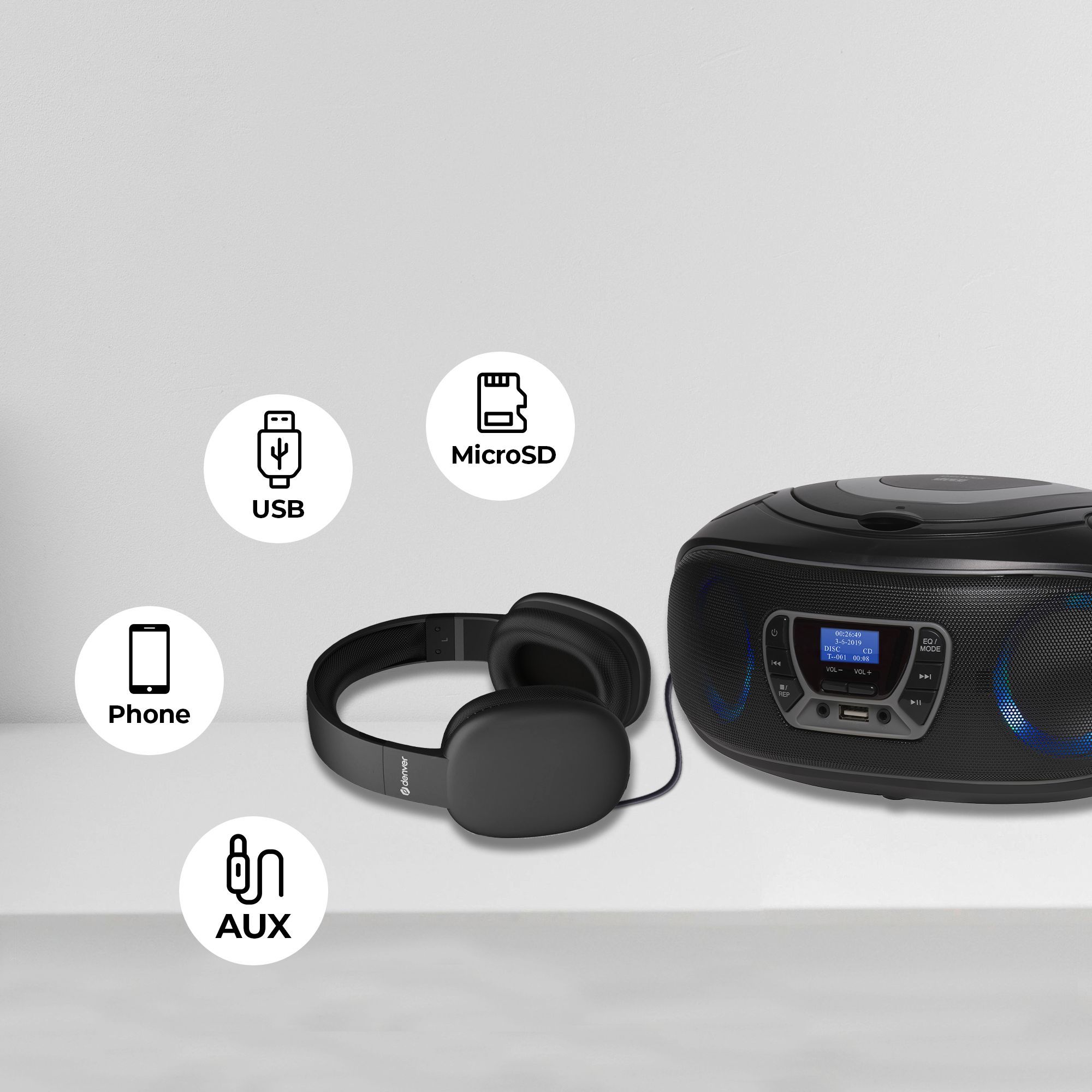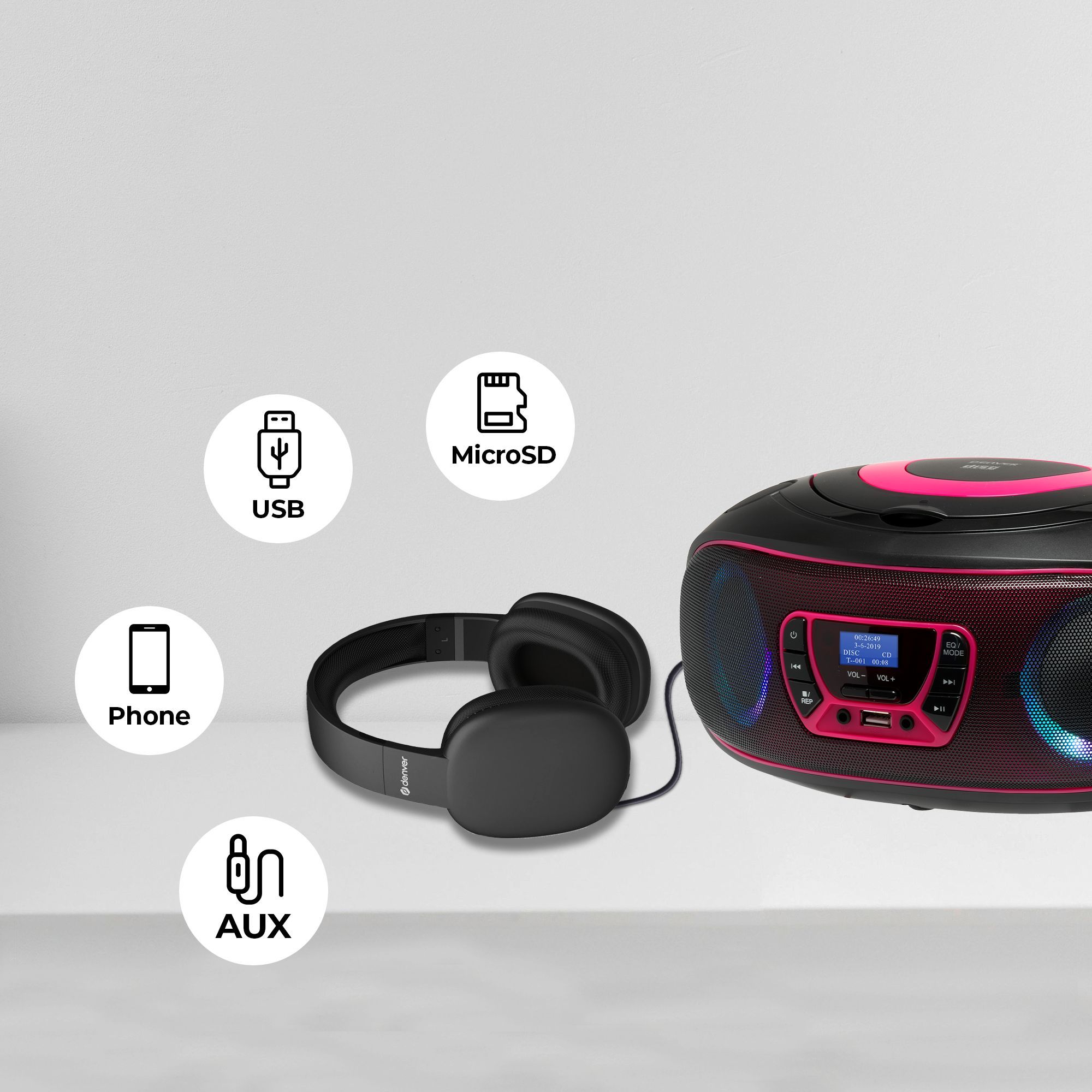 Denver TDB-212BT Boombox mit CD, Bluetooth, USB, AUX, DAB+/FM-Radio & LED-Licht