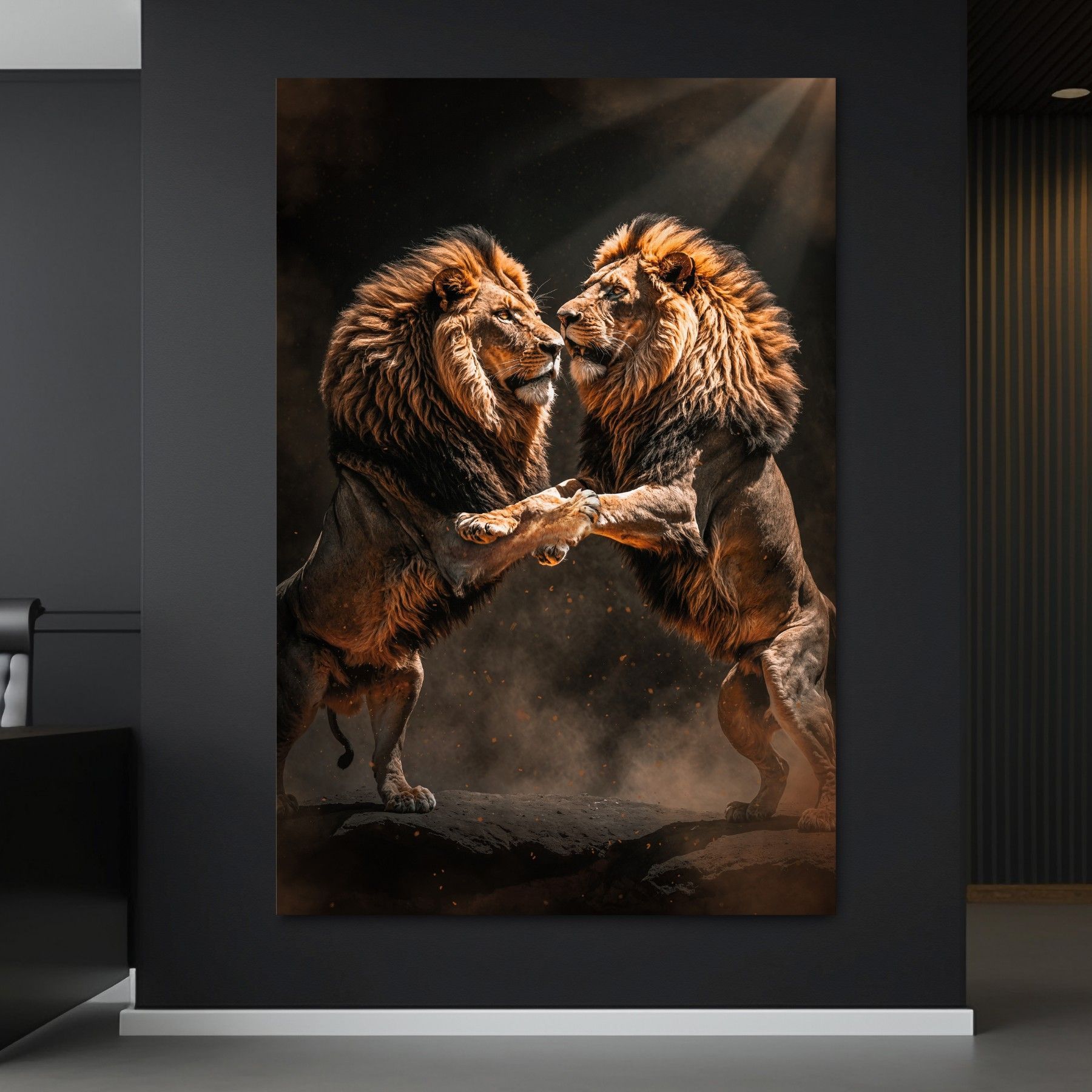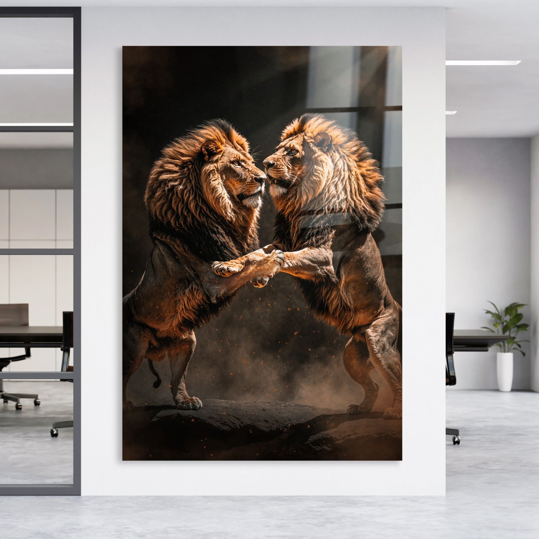 Wandbild Kampf zwischen Löwen tier Acrylglas , Leinwand , Poster Modern Deko Kunst